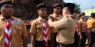 PRAMUKA.ID – Tak seperti biasanya, pelantikan pramuka penegak bantara diadakan di sekolah atau sembari berkemah di hutan dan pegunungan, gerakan pramuka gugus depan 02.051 – 02.052 pangkalan SMA Antartika Buduran Sidoarjo selenggarakan pelantikan penegak bantara di Candi Pari Porong Sidoarjo, Minggu (28/07/2024).