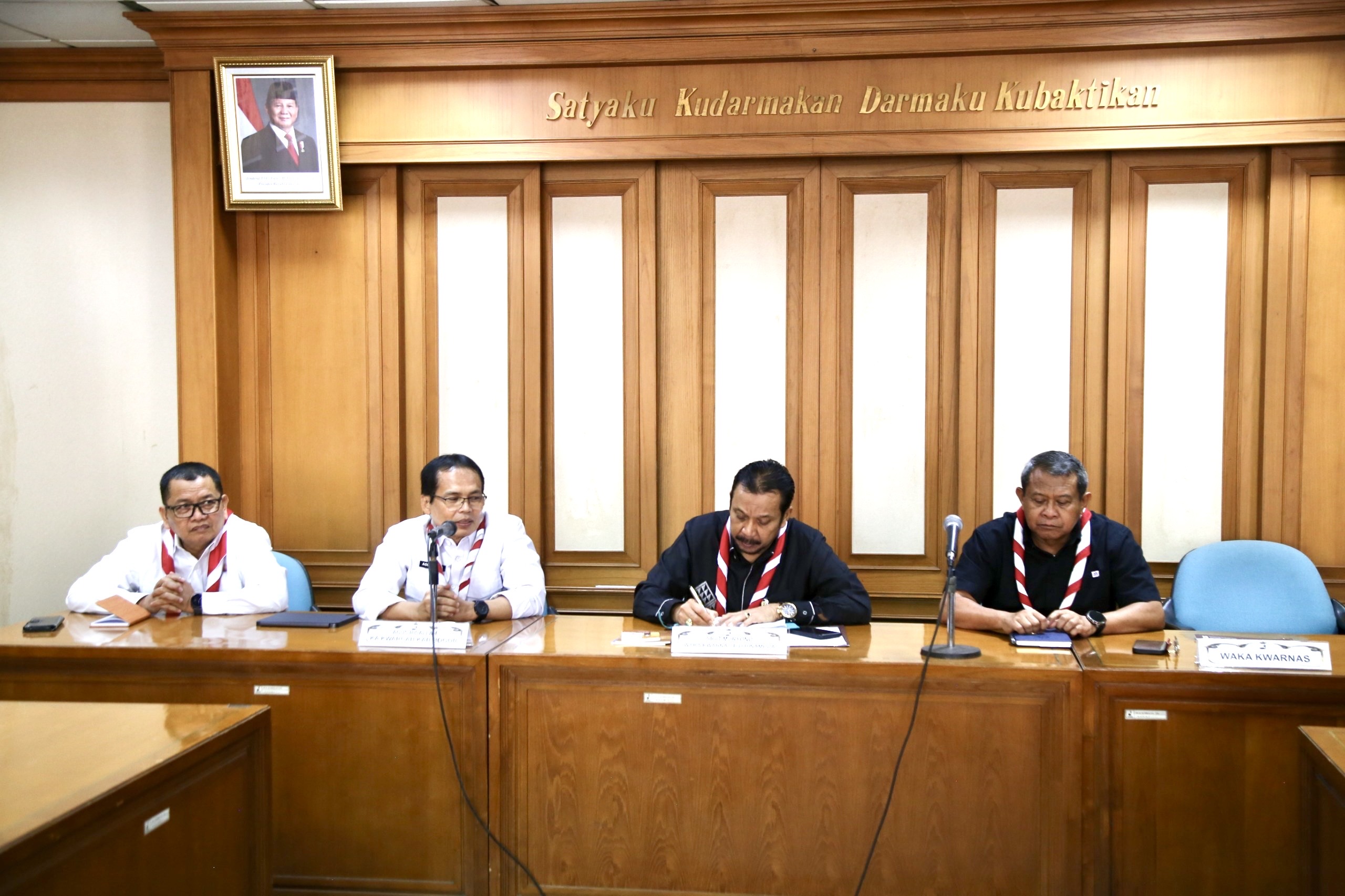 Audiensi ini dipimpin oleh Waka Kwarnas Bidang Binamuda Kak Dr. Sigit Muryono, M.Pd., Kons., yang didampingi oleh Waka Kwarnas Bidang Abdimas, Lingkungan Hidup, Kehumasan, dan Informatika Kak Mayjen TNI Mar (Purn) Yuniar Ludfi, dan dihadiri oleh Kepala Pusdatin Kwarnas Kak Ria Yusnita, Karo Binamuda Kwarnas Kak Desi Ampriani, M.Ikom., Karo Binawasa Kwarnas Kak Teguh Prihatmono, S.IP., Karo Orgakum Renbang Kwarnas Kak Agus A Rifai, S.Pd., Karo Abdimas, LH, Humasinfo Kwarnas Kak Haerudin, S.P., dan Ketua Kwarcab Kabupaten Bogor Kak Agus Ridallah, S.H., M.H., M.Pd., serta 16 perwakilan Kwarcab Kabupaten Bogor lainnya.