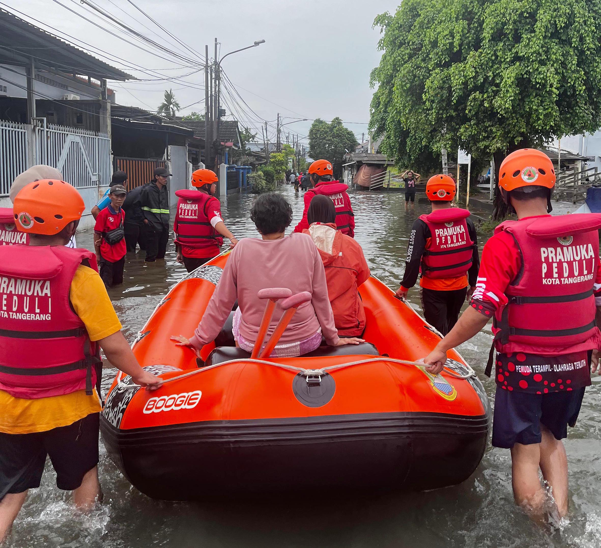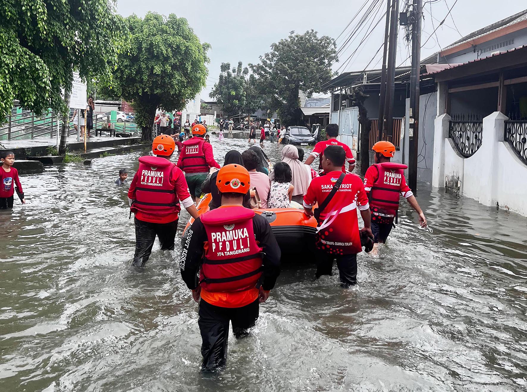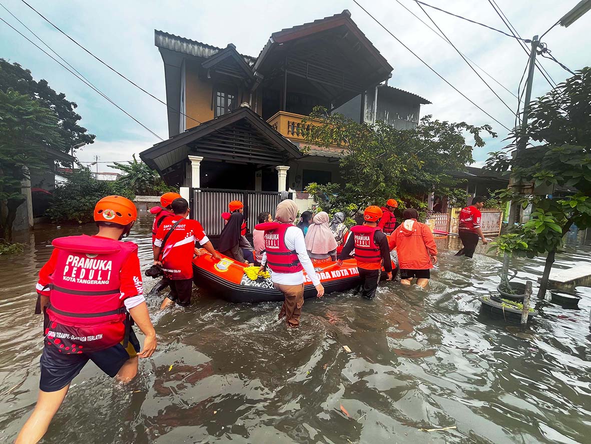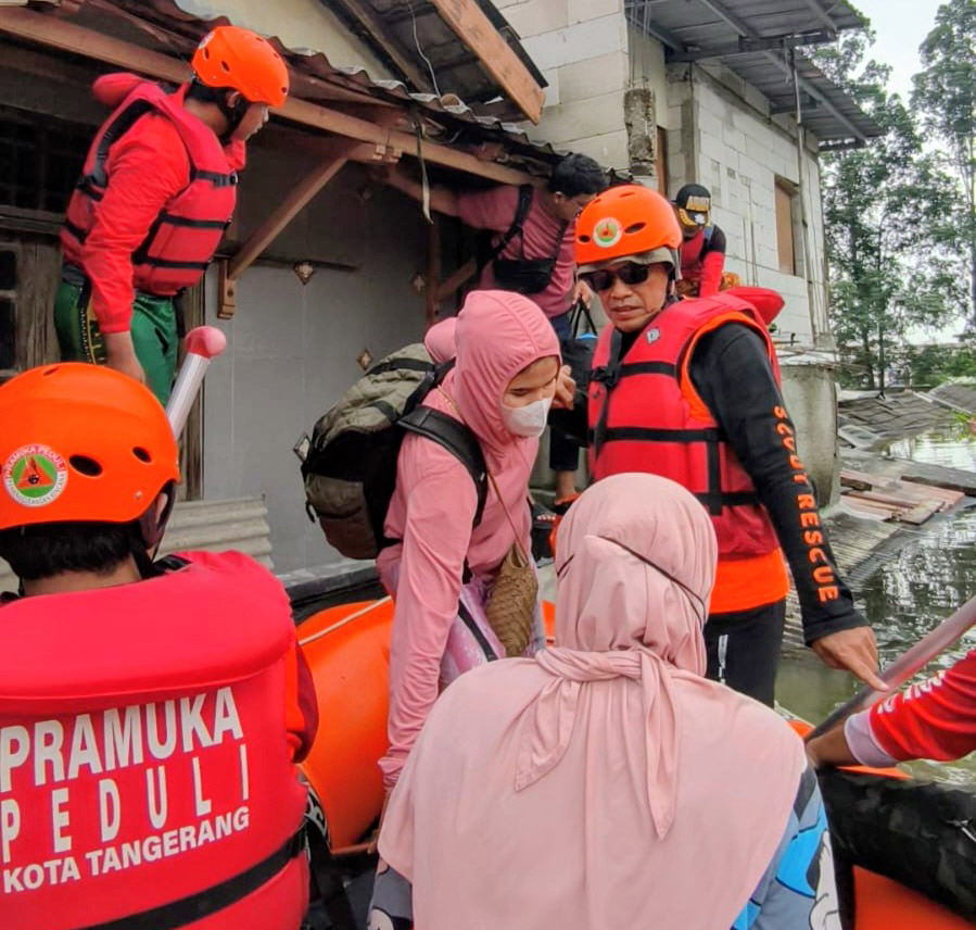 Banjir 4 Meter Rendam RW 08 Periuk Damai, Saka Patriot Kwarcab Kota Tangerang Kerahkan Personil Bantu Evakuasi Warga