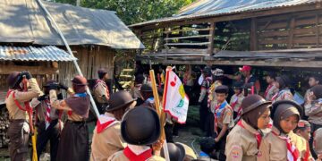 Diguyur hujan, 72 Pramuka SDN Cipeucang 01 Tetap Semangat Ikuti Perjusa