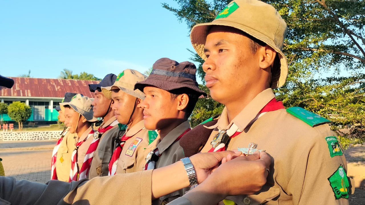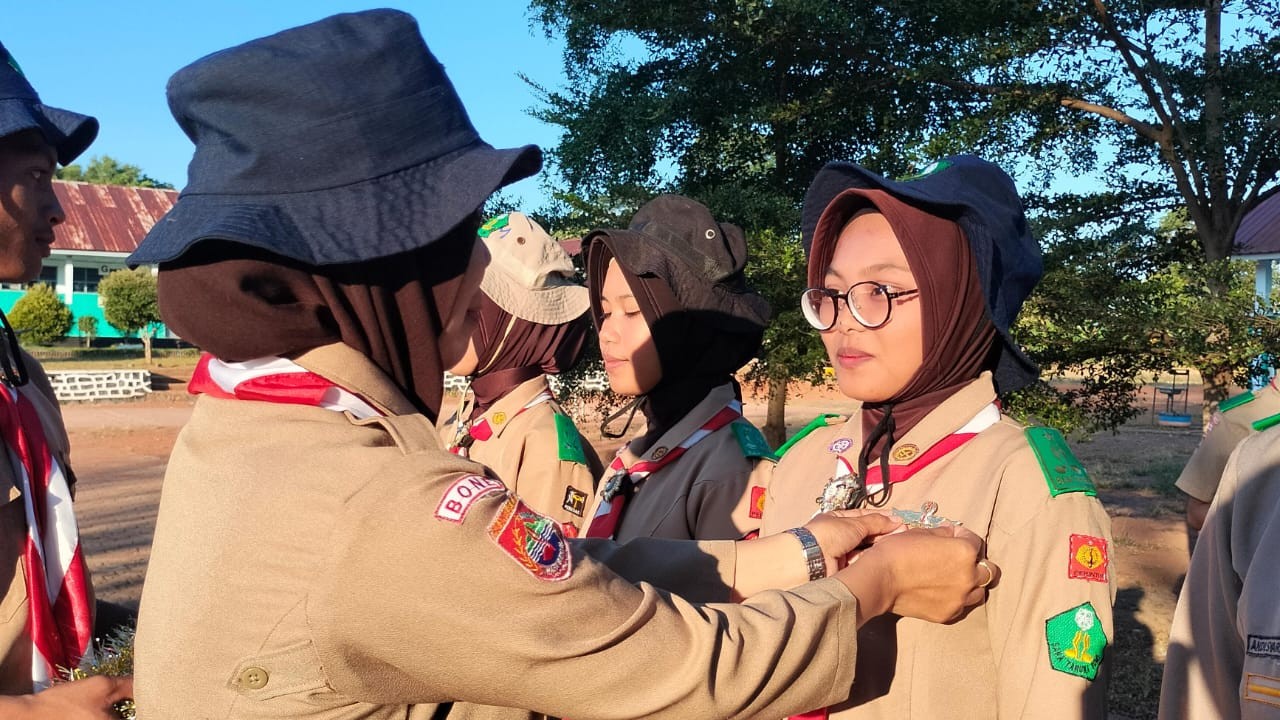 PRAMUKA.ID – Semangat kebanggaan dan penyelesaian penempuhan jalan kaki menjadi nyanyian paling merdu dalam upacara penyematan Tiska wing tapak merah di halaman upacara SMA Negeri 19 Bone, Kecamatan Patimpeng, Kabupaten Bone, sore hari (Minggu, 05/10/2025). Sebanyak 31 anggota Pramuka Penegak yang berasal dari berbagai pangkalan gugus depan Kwartir Patimpeng resmi dianugerahi tanda ikut serta kegiatan (tiska) berupa brevet/wing tapak merah, sebuah simbol yang menegaskan bahwa mereka adalah generasi muda yang tidak hanya berani bermimpi, tetapi juga berani melangkah jauh melampaui batas diri!.