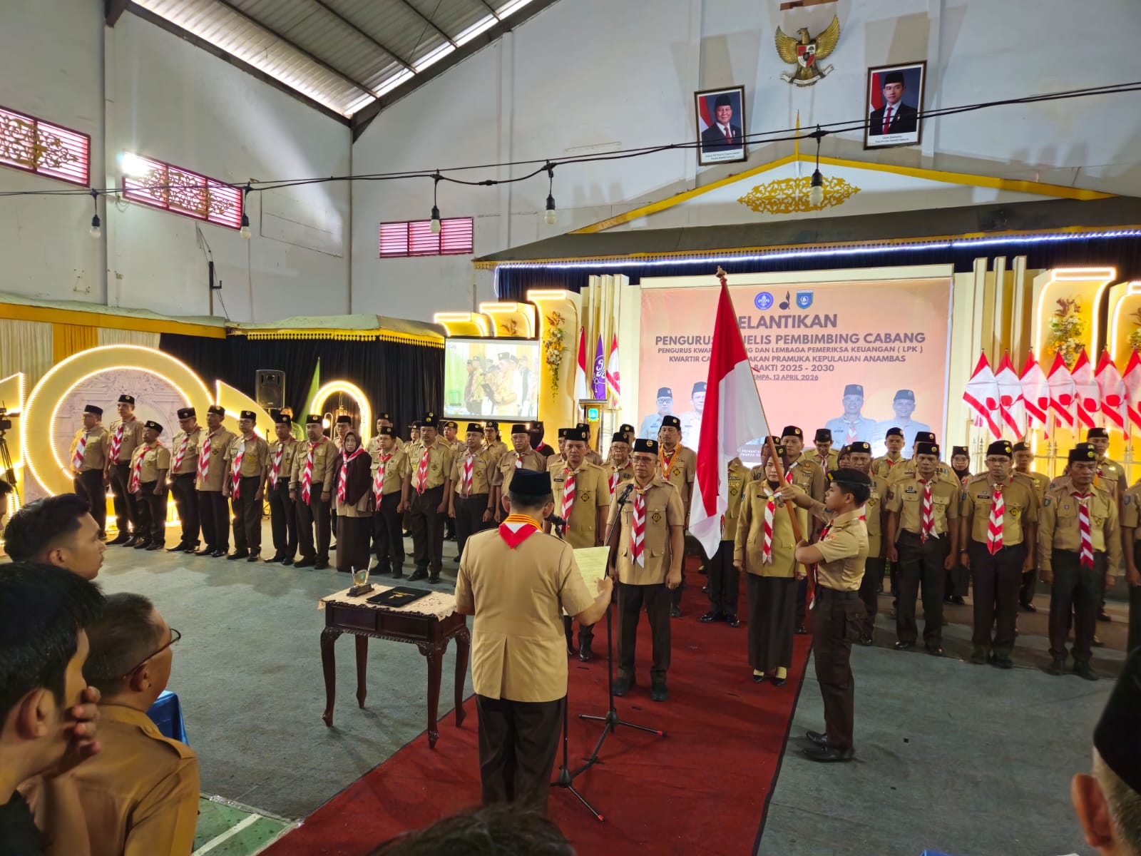 PRAMUKA.ID – Kwarda Kepri (Pusinfo) – Rangkaian panjang persiapan yang matang akhirnya bermuara pada pelaksanaan pelantikan pengurus Gerakan Pramuka Kabupaten Kepulauan Anambas Masa Bakti 2025–2030 yang berlangsung khidmat di Gedung BPMS Tarempa, Senin (13/04/2026).