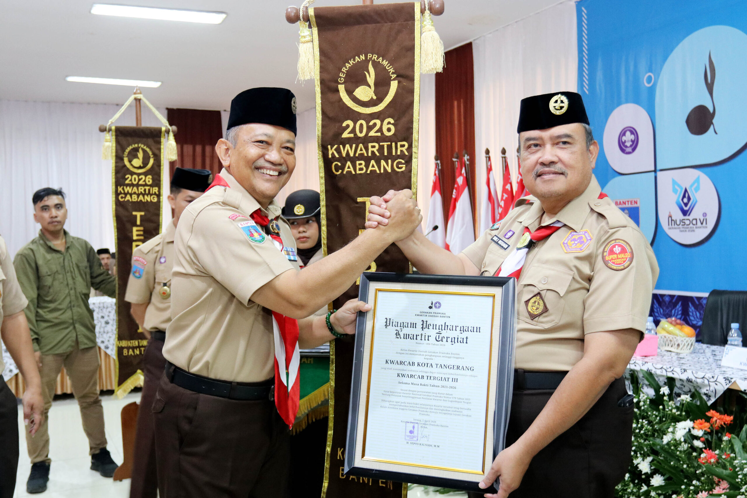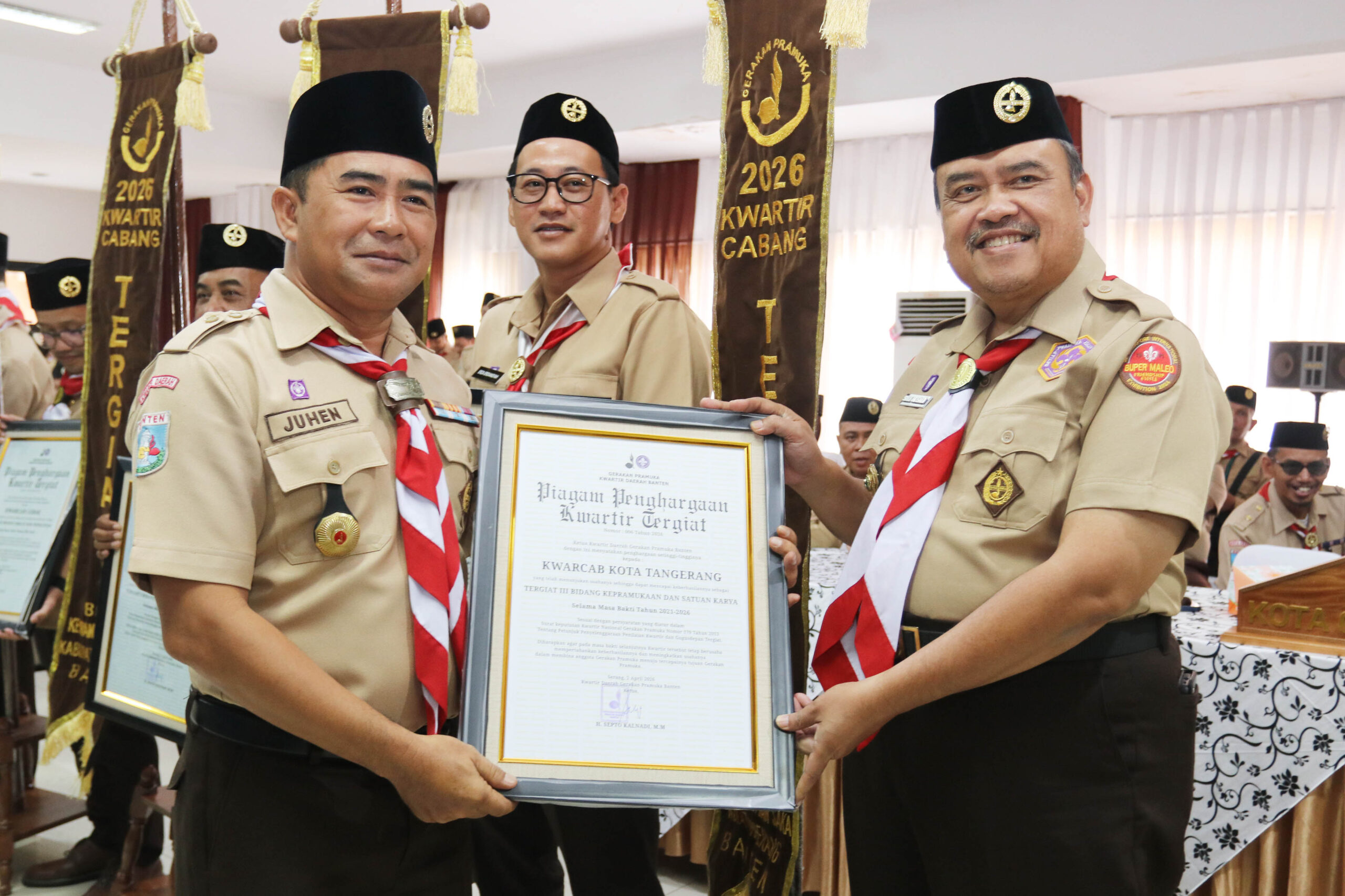 PRAMUKA.ID – Kota Serang – Kwartir Cabang (Kwarcab) Kota Tangerang menorehkan sejarah baru dalam kepramukaan, yakni berhasil meraih tunggul Kwarcab Tergiat tingkat Kwartir Daerah (Kwarda) Banten 2026.