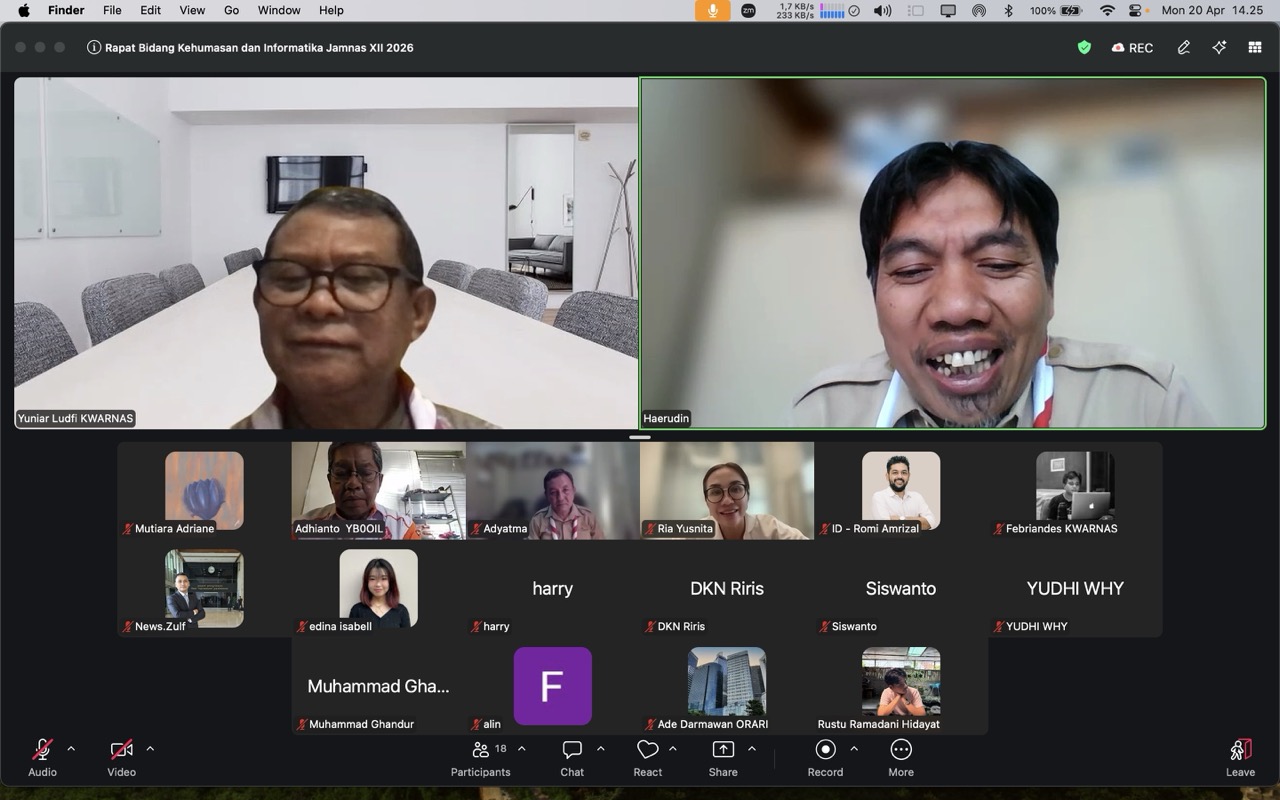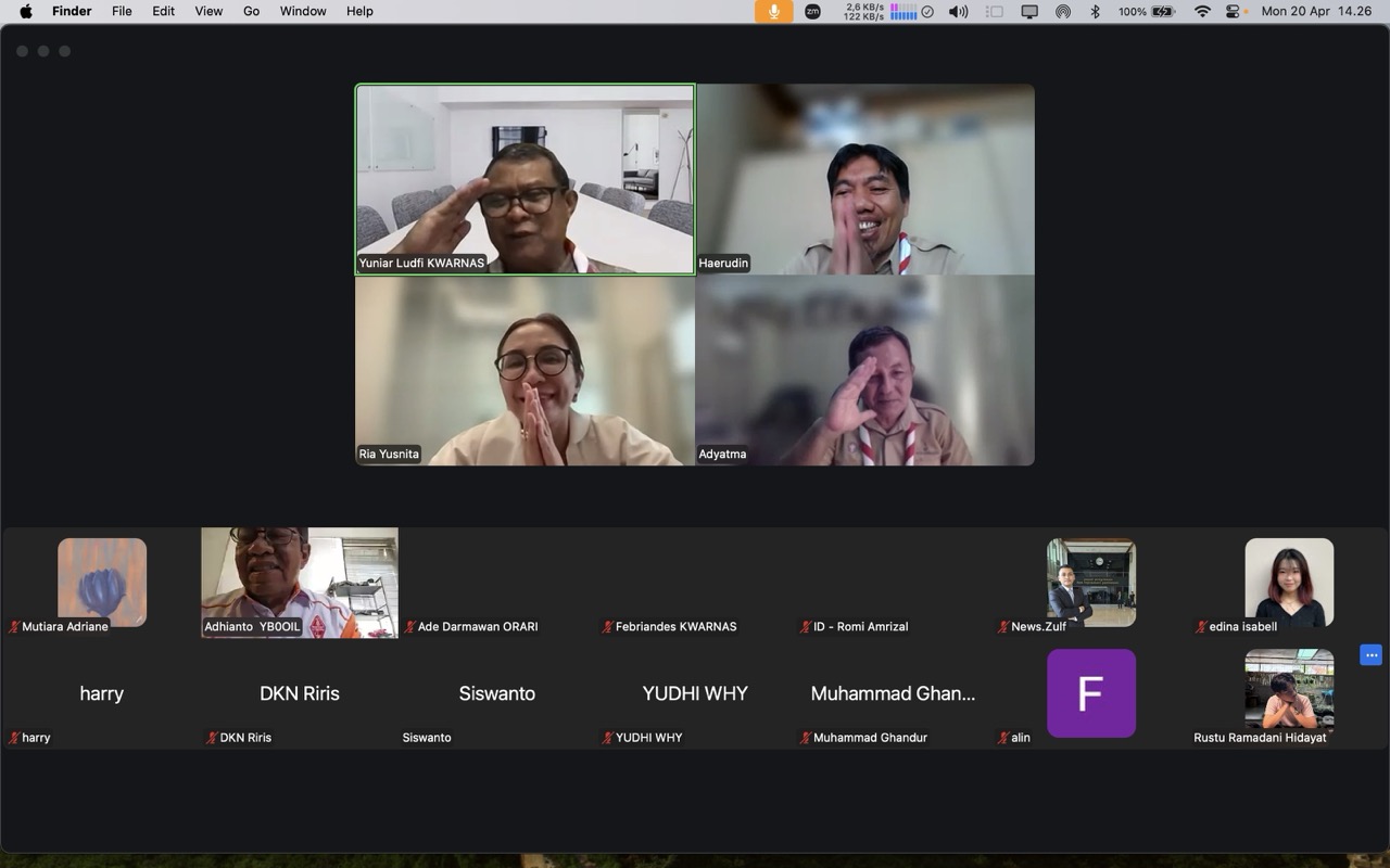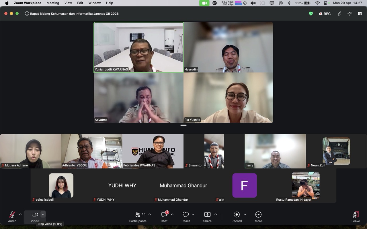 PRAMUKA.ID – Jakarta – Kwartir Nasional (Kwarnas) Gerakan Pramuka menggelar rapat bidang Kehumasan dan Informatika dalam rangka mematangkan persiapan Jambore Nasional (Jamnas) XII Tahun 2026. Rapat dilaksanakan secara daring melalui Zoom Meeting pada Senin (20/4) pukul 13.00 WIB hingga selesai.