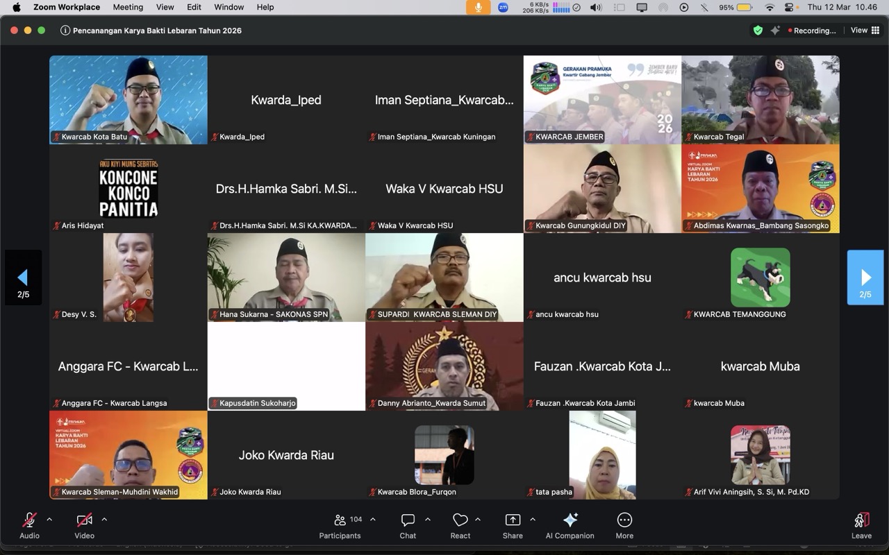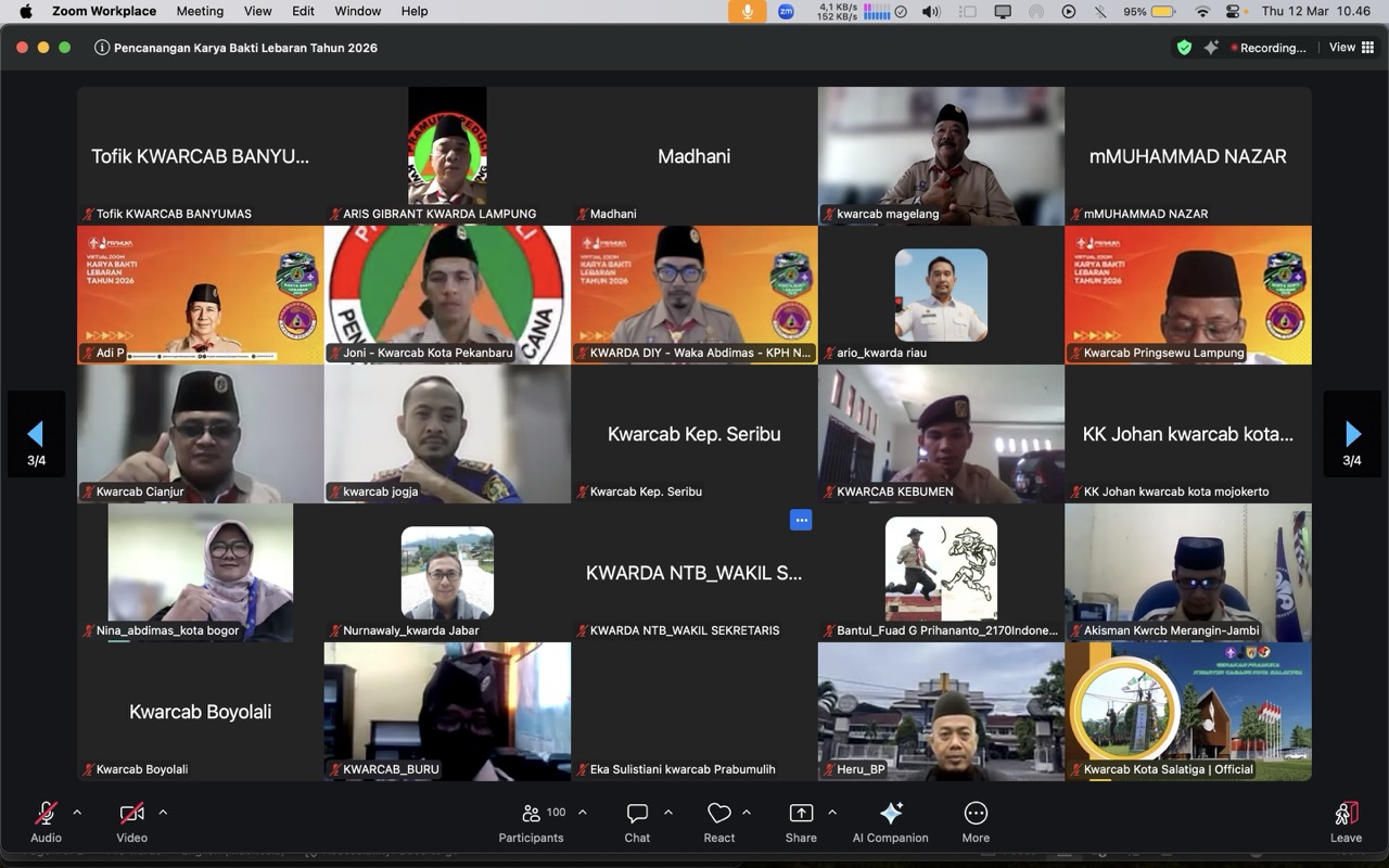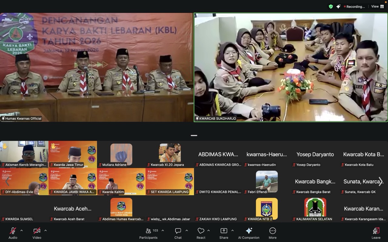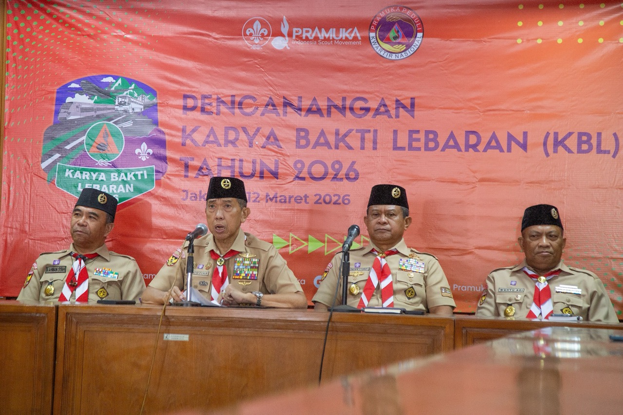 PRAMUKA.ID – Kwartir Nasional Gerakan Pramuka secara resmi melakukan Pencanangan Karya Bakti Lebaran (KBL) Tahun 2026 pada Kamis, 12 Maret 2026. Acara ini berlangsung secara hybrid, dengan kehadiran luring di Gedung Kwartir Nasional, Jakarta dan daring melalui sambungan Zoom Meeting yang diikuti oleh jajaran Kwartir Gerakan Pramuka di seluruh Indonesia.
