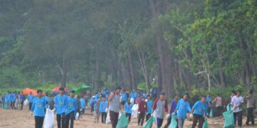 PRAMUKA.ID – Kegiatan bersih pantai yang dilaksanakan pada rangkaian kegiatan Kemah Pemuda Pesisir 2024 di JS Resort Desa Temajuk Kecamatan Paloh Kabupaten Sambas Provinsi Kalimantan Barat 27 Juni – 1 Juli 2024 berhasil kumpulkan sampah di bibir pantai lebih dari 1 ton. Kegiatan yang di mulai pada pagi hari Minggu (30/6) diikuti lebih dari 700 orang termasuk warga sekitar lokasi kegiatan serta partisipan kegiatan Festival Pesisir Paloh 2024, ramainya massa yang terlibat dalam kegiatan bersih pantai ini membuat pekerjaan semakin ringan.