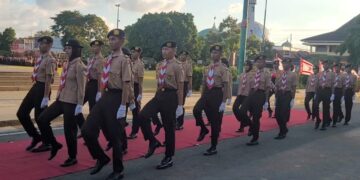 Dengan seragam rapi dan langkah yang tegap, mereka berhasil menjalankan tugasnya dengan baik, mendapatkan apresiasi dari para peserta dan undangan yang hadir.