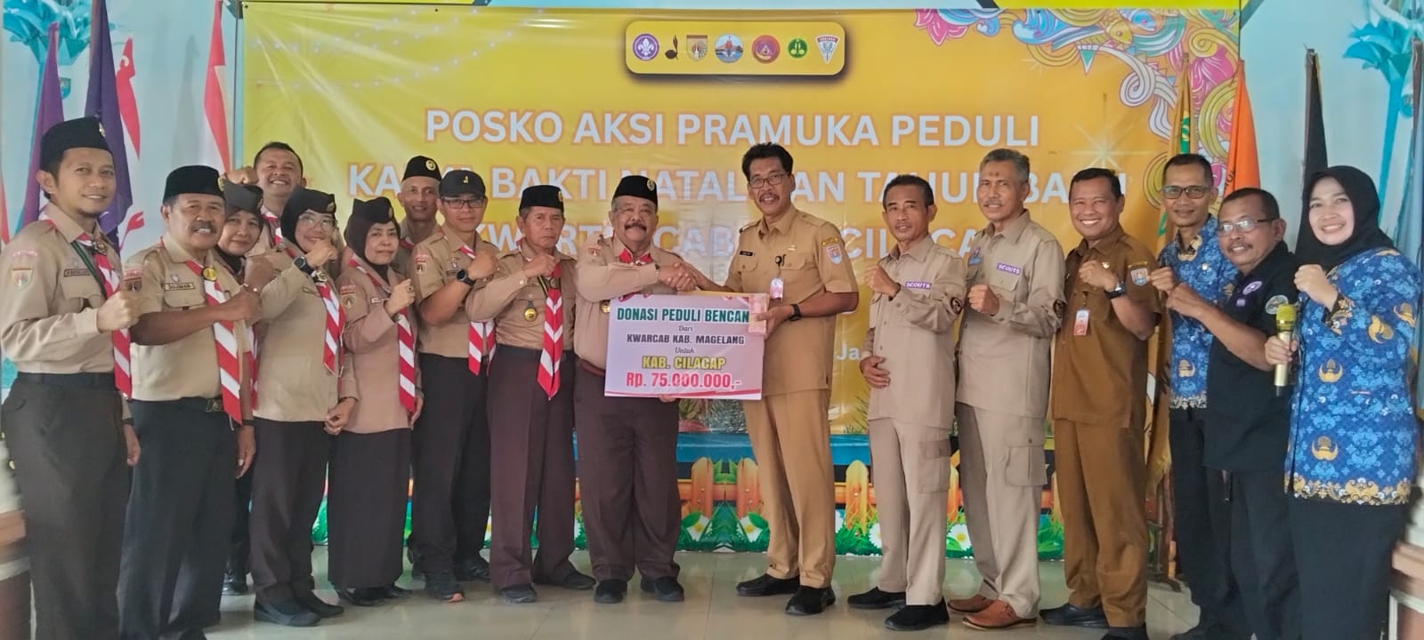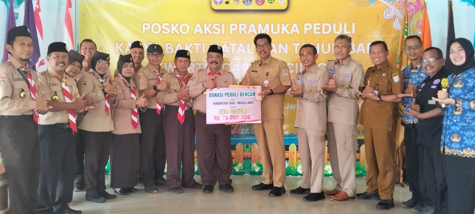 Kwartir cabang magelang anjangsana ke cilacap dalam rangka menyerahkan Donasi Peduli Bencana berupa uang sebanyak Rp.75.000.000 (Tujuh Puluh Lima Juta Rupiah) untuk disalurkan kepada masyarakat yang terdampak bencana diwilayah kabupaten cilacap