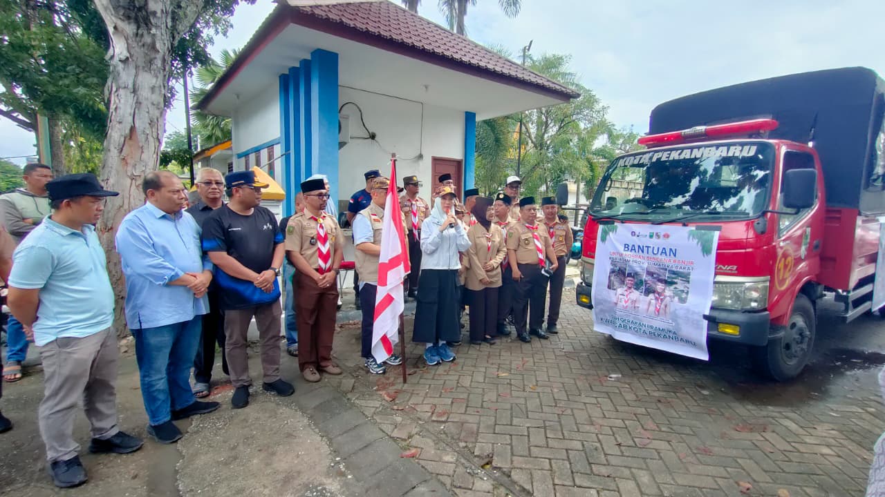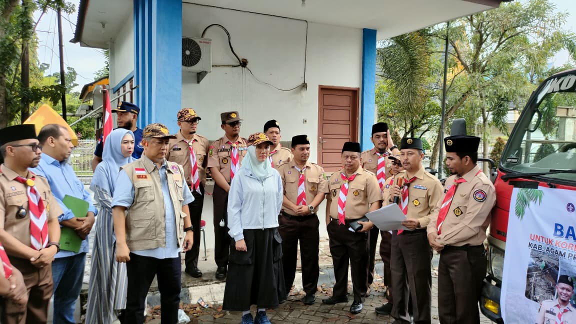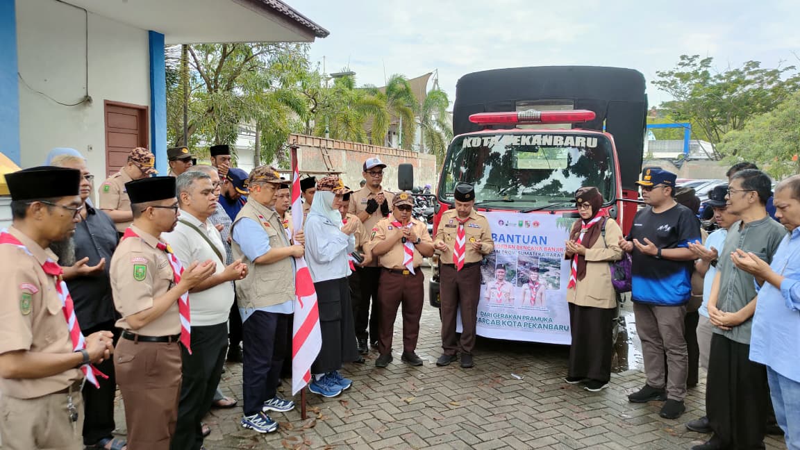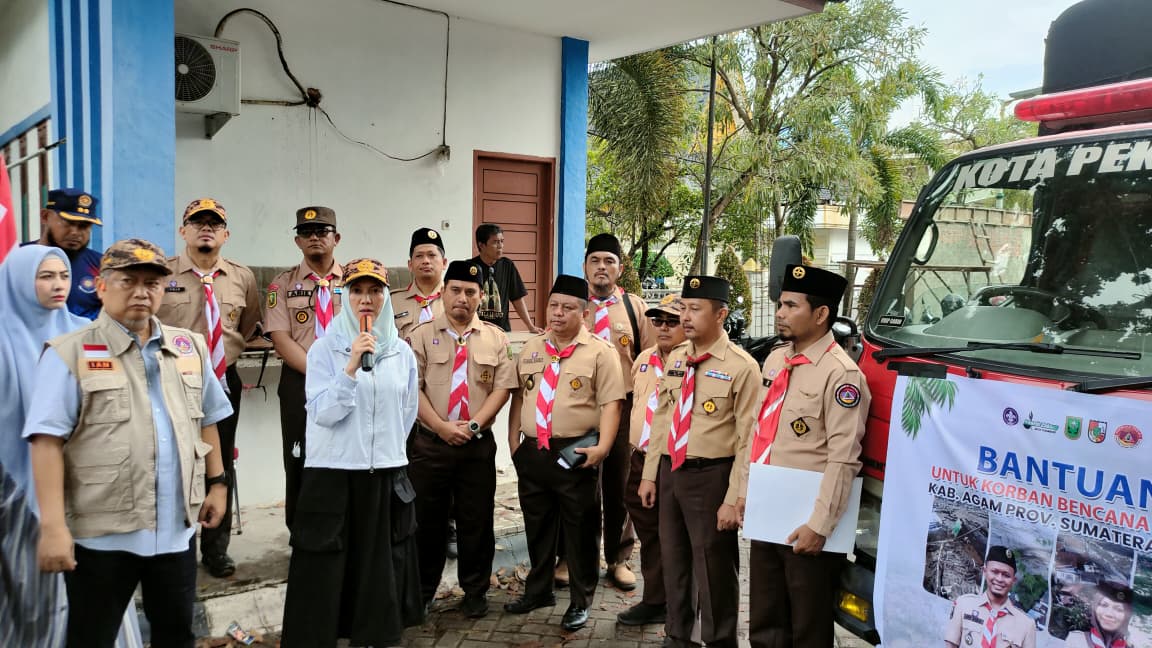 PRAMUKA.ID, Pekanbaru — Ketua Kwartir Cabang (Kwarcab) Gerakan Pramuka Kota Pekanbaru, Kak Hj. Sulastri A, S.Sos., MH, secara resmi melepas bantuan kemanusiaan bagi korban banjir di Kabupaten Agam, Sumatera Barat. Pelepasan bantuan dilakukan secara simbolis di halaman Rumah Dinas Wali Kota Pekanbaru, Ahad (21/12/2025).