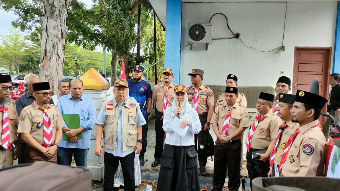 Dalam arahannya, Kak Sulastri menyampaikan bahwa aksi kemanusiaan tersebut merupakan wujud kepedulian Gerakan Pramuka Kota Pekanbaru terhadap saudara-saudara yang terdampak bencana.
