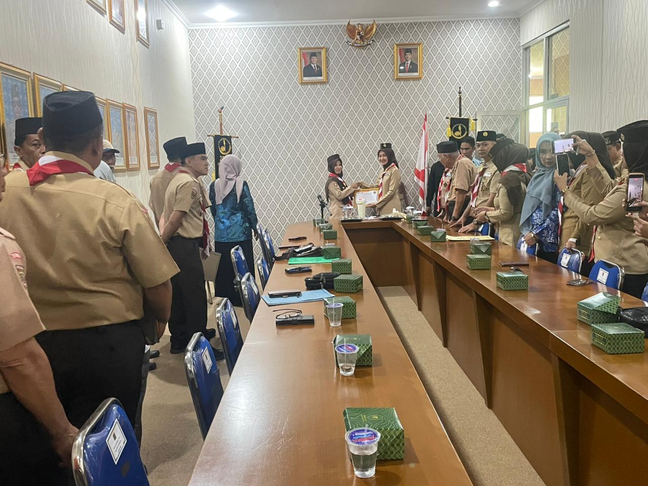 PRAMUKA.ID – Bandar Lampung, Ketua Kwarda Lampung kak Jihan Nurlela memberikan penghargaan kepada Kwarcab, Kwarran, Gudep dan sejumlah donatur Bumbung Kemanusiaan untuk Banjir Sumatera pada Jum’at (9/1/2026) pagi di ruang rapat Kwarda Lampung, Jln. Pramuka, Bandar Lampung.