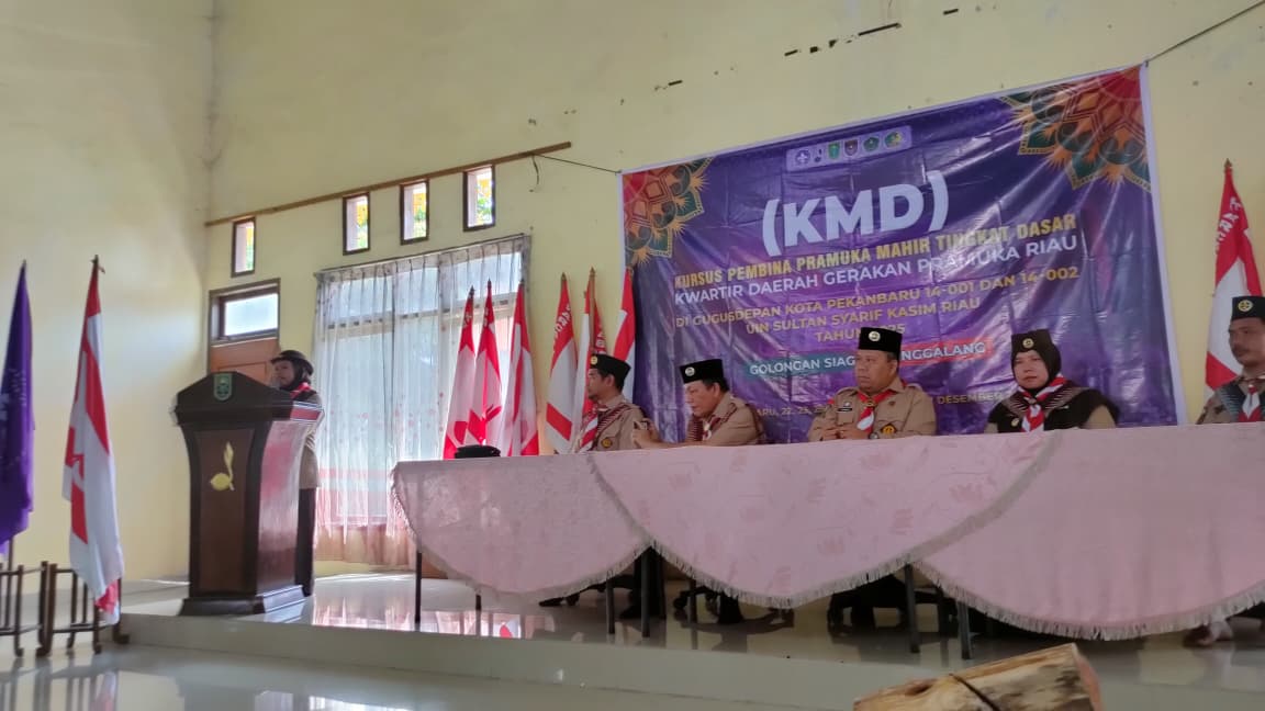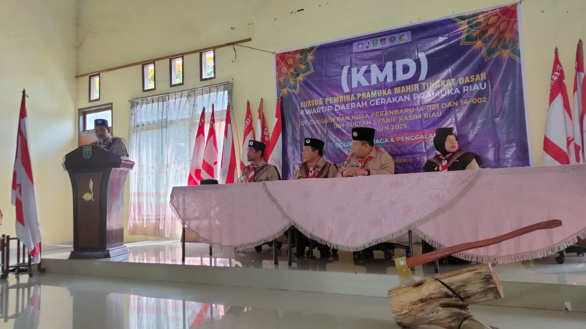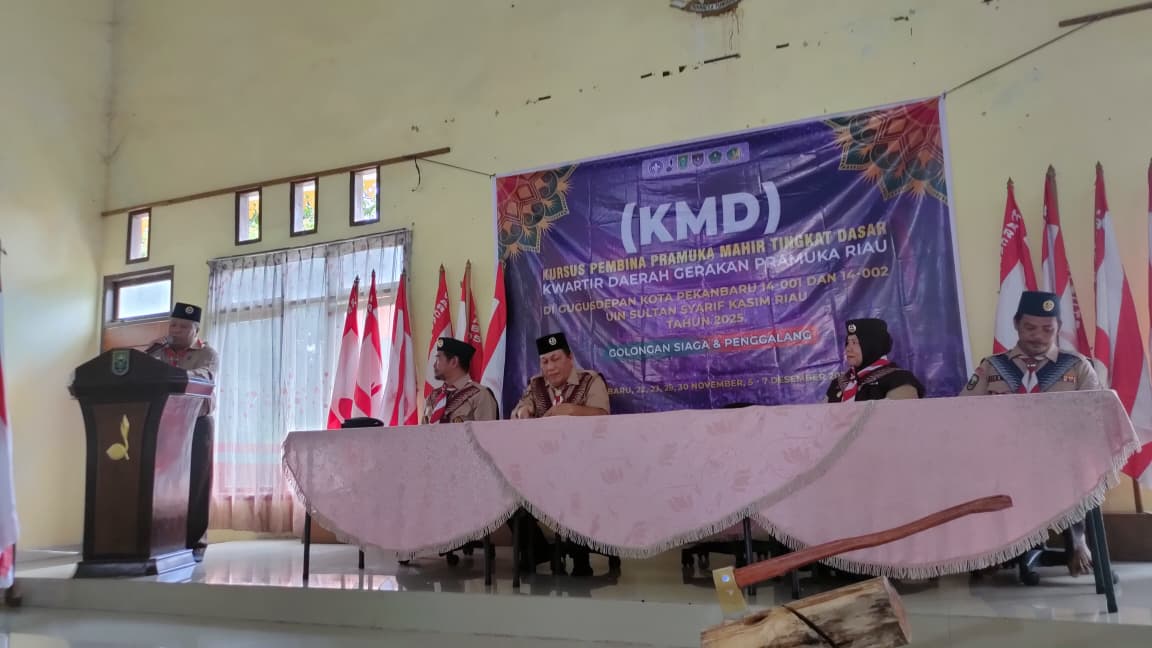 PRAMUKA.ID, Pekanbaru – Kursus Pembina Pramuka Mahir Tingkat Dasar (KMD) Gugus Depan 14-001 dan 14-002 Universitas Islam Negeri Sultan Syarif Kasim (UIN Suska) Riau resmi ditutup oleh Ketua Kwarda Gerakan Pramuka Riau, Kak Drs. H. Irwan, M.Si, di Bumi Perkemahan Pusdiklatda Riau, Ahad (7/12/2025).