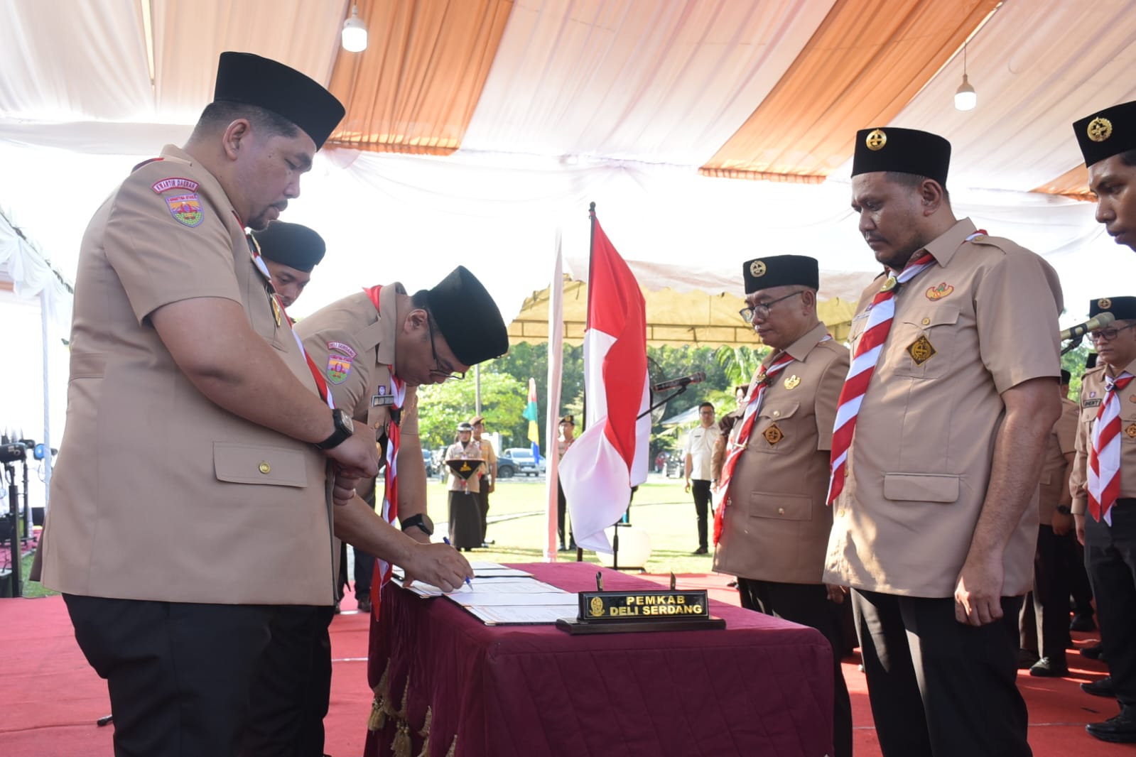 PRAMUKA.ID – Deli Serdang, 8 April 2026, Ketua Kwartir Daerah Gerakan Pramuka Sumatera Utara, Dikky Anugerah Panjaitan, melantik Bupati Deli Serdang, Asri Ludin Tambunan, sebagai Ketua Majelis Pembimbing Cabang (Mabicab) Kwartir Cabang Gerakan Pramuka Deli Serdang Masa Bakti 2026–2031.