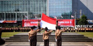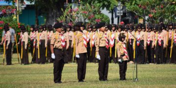 PRAMUKA.ID – Gerakan Pramuka Kwartir Cabang (Kwarcab) Banyumas menggelar upacara dalam rangka Peringatan Hari Pramuka Ke-63 Tahun 2024, Sabtu (24/8/24) di Alun-alun Purwokerto. Penjabat (Pj) Bupati Banyumas Hanung Cahyo Saputro yang juga sebagai Ketua Majelis Pembimbing Cabang (Kamabicab) Gerakan Pramuka Kabupaten Banyumas menjadi pembina upacara, dengan petugas upacara semua dari Pasukan Tunas Muda (PTM) Kwarcab Banyumas.