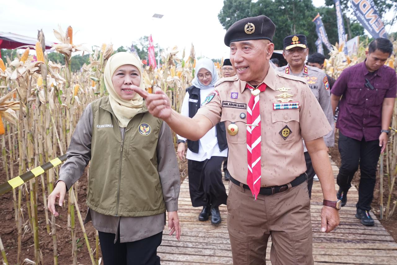 “Alhamdulillah Jawa Timur sudah melampaui dari ketahanan pangan menuju kedaulatan pangan. Didukung juga bahwa kontribusi Jatim dalam produksi jagung nasional tertinggi nomor satu. Hampir 30 persen pasokan jagung nasional dari petani Jatim,” jelasnya.