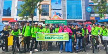Puluhan anggota Saka Kalpataru Kota Pontianak, mengawali perjalanan menuju lokasi dengan bersepeda wujud transportasi hijau dan standbye pada stand dengan melakukan sosialisasi edukasi dengan menyapa pejalan kaki, mengajak pembiasaan tanpa plastik dengan kuis-kuis edukatif kemudian membagikan doorprize berupa kantong belanja non plastik.