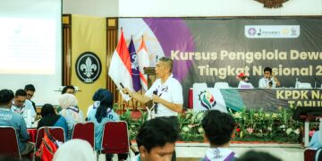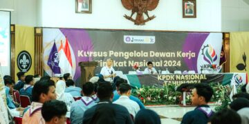 PRAMUKA.ID – Bersama Bermanfaat, Dewan Kerja Bermartabat, merupakan tema dari Kursus Pengelola Dewan Kerja (KPDK ) Tingkat Nasional Tahun 2024 ini. KPDK Nasional 2024, yang dilaksanakan pada tanggal 30 Agustus s.d. 4 September 2024 di Taman Wiladatika Cibubur, Jakarta Timur ini di rancang khusus untuk meningkatkan kapasitas individu serta memperkuat sinergi dan kolaborasi di antara Dewan Kerja se-Indonesia. Guna mendukung keberhasilan program-program kepramukaan yang berdampak luas bagi generasi muda, KPDK Nasional 2024 mempersiapkan kader-kader pemimpin muda yang kompeten dan profesional, sehingga mampu membawa perubahan positif baik di lingkungan kepramukaan maupun di masyarakat luas.
