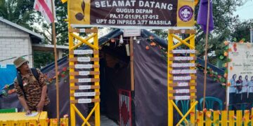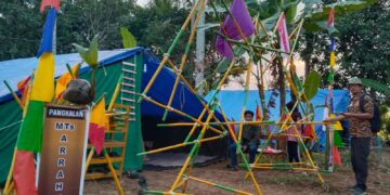 PRAMUKA.ID – Kreasi warna-warni menghiasi tenda para peserta tingkat Penggalang di Bumi perkemahan Desa Massila, Kecamatan Patimpeng, Kabupaten Bone, Sulsel. Uniknya lagi, tenda-tenda tersebut dilengkapi gapura dan pagar-pagar dengan corak dan model yang berbeda-beda tetapi unik, ruang tamu, dapur, bahkan ruangan dan pekarangan dibuat seindah mungkin. Hal ini dikarenakan adanya kategori penilaian keindahan dsn kebersihan tapak tenda.