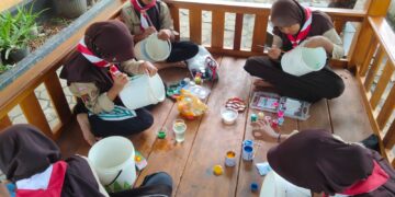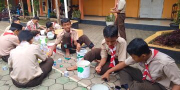 PRAMUKA.ID – Dalam rangka meningkatkan kesadaran lingkungan dan kreativitas anggota Pramuka, pembina pangkalan SD Negeri 3 Pasinggangan Banyumas memberi tugas untuk memanfaatkan ember cat bekas diubah menjadi pot cantik Jumat 31 Oktober 2024. Sebanyak 24 Pramuka penggalang kelas 6, diberi kesempatan untuk mempraktikkan pengelolaan sampah plastik dengan cara membuat karya inovatif berupa pot tanaman dari ember plastik bekas cat.