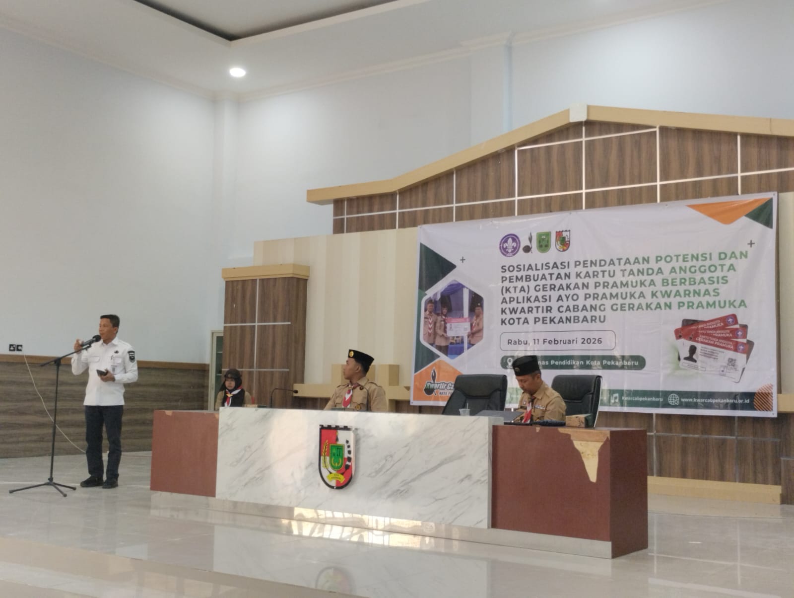 PRAMUKA.ID, Pekanbaru – Kwartir Cabang (Kwarcab) Gerakan Pramuka Kota Pekanbaru menggelar sosialisasi pendataan potensi dan pembuatan Kartu Tanda Anggota (KTA) Gerakan Pramuka Berbasis Aplikasi Ayo Pramuka Kwarnas di Aula Dinas Pendidikan Kota Pekanbaru, Rabu (11/2/2026).