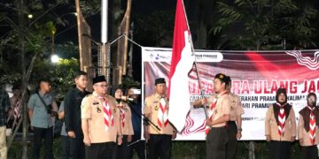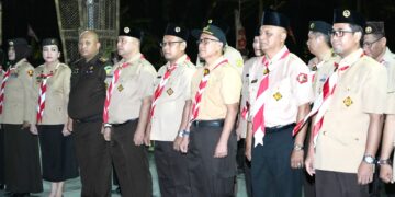 PRAMUKA.ID – Upacara renungan dan ulang janji Kwarda Kalbar dipimpin oleh Pj Sekda Kalimantan Barat, Kak Mohammad Bari, S.Sos., M.Si. sebagai pembina upacara. Upacara tersebut diiringi dengan pembacaan dasa dharma sebagai dasar dari gerakan pramuka. Ulang janji yang dilaksanakan di halaman Pendopo Gubernur Kalimantan Barat, Jl. A. Yani, Pontianak pada Selasa (13/08/2024) malam tersebut belangsung khitmat dan lancar.