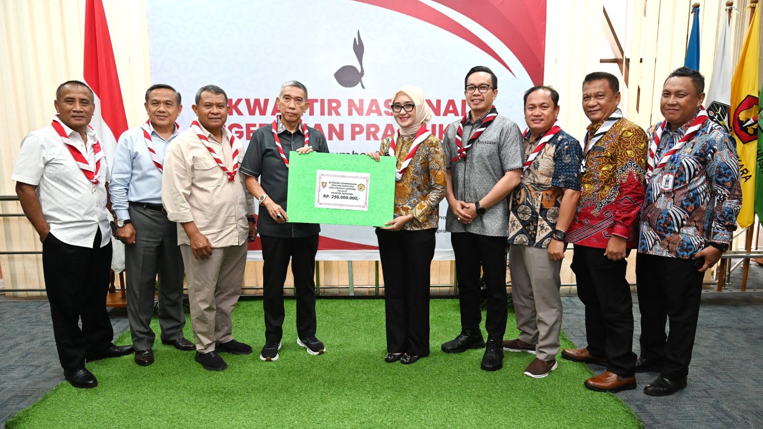 Bantuan tersebut diserahkan langsung oleh Kak dr. Jihan Nurlela, M.M., selaku Ketua Kwarda Lampung, yang juga menjabat sebagai Wakil Gubernur Lampung, dan diterima oleh Kak Mayjen TNI (Purn) Dr. Bachtiar, S.IP., M.AP., selaku Sekretaris Jenderal Kwarnas Gerakan Pramuka di Jakarta.