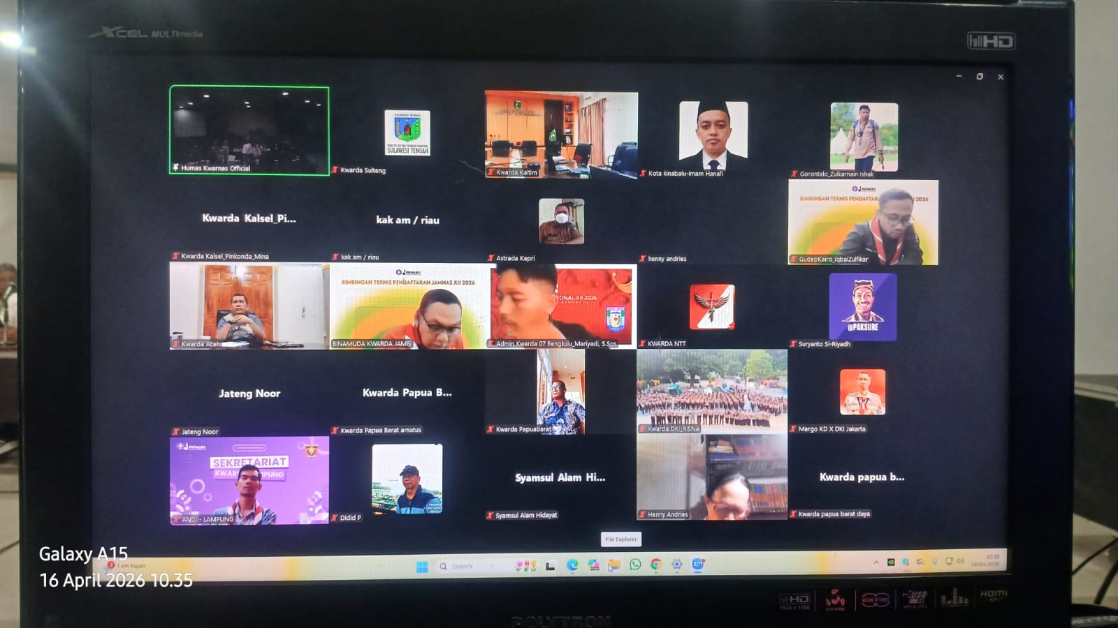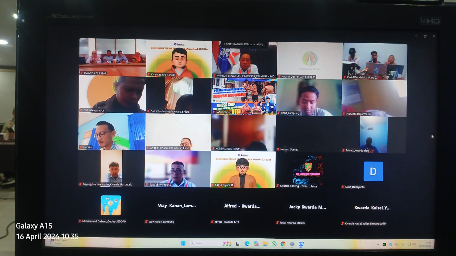 PRAMUKA.ID – Jakarta – Kwartir Nasional (Kwarnas) Gerakan Pramuka menyelenggarakan Bimbingan Teknis (Bimtek) Pendaftaran Jambore Nasional (Jamnas) XII Tahun 2026 pada Kamis (16/04/2026). Kegiatan ini dilaksanakan secara luring di Gedung Soedirman, Taman Rekreasi Wiladatika (TRW), serta diikuti secara daring melalui Zoom Meeting oleh perwakilan Kwartir Daerah (Kwarda) dan Gugus Depan Luar Negeri.