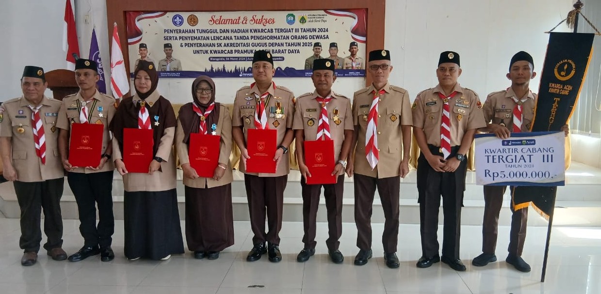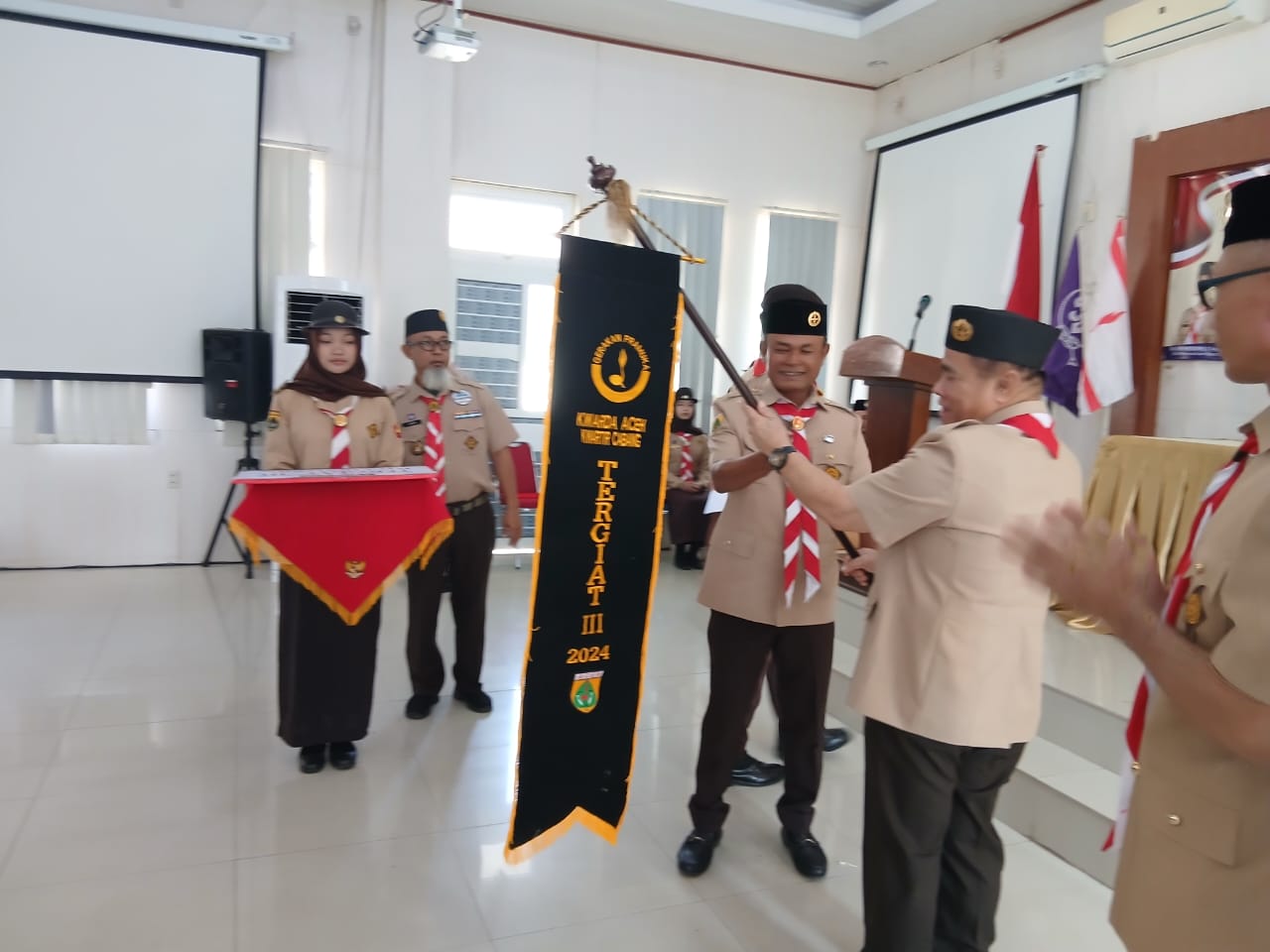 PRAMUKA.ID, Blangpidie – Pemberian Tunggul Kwarcab Tergiat III dilaksanakan pada Rabu(5/03/2026) di Aula Bappeda Aceh Barat Daya yang diserahkan langsung Oleh Ketua Harian Kwartir Daerah Aceh Kak Djufri Efendi .