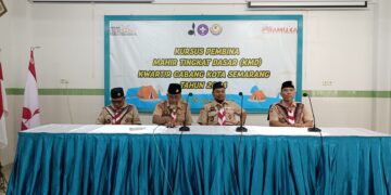 PRAMUKA.ID – Kwartir Cabang Gerakan Pramuka Kota Semarang menyelenggarakan kegiatan Kursus Pembina Pramuka Mahir Tingkat Dasar (KMD) bagi pembina Pramuka di kota Semarang. Kegiatan dilaksanakan mulai hari Minggu, 23 Juni sd Jumat, 28 Juni 2024 di kampus SMA Al Azhar 14 Jl Klenteng sari Pedalangan, Banyumanik Semarang.