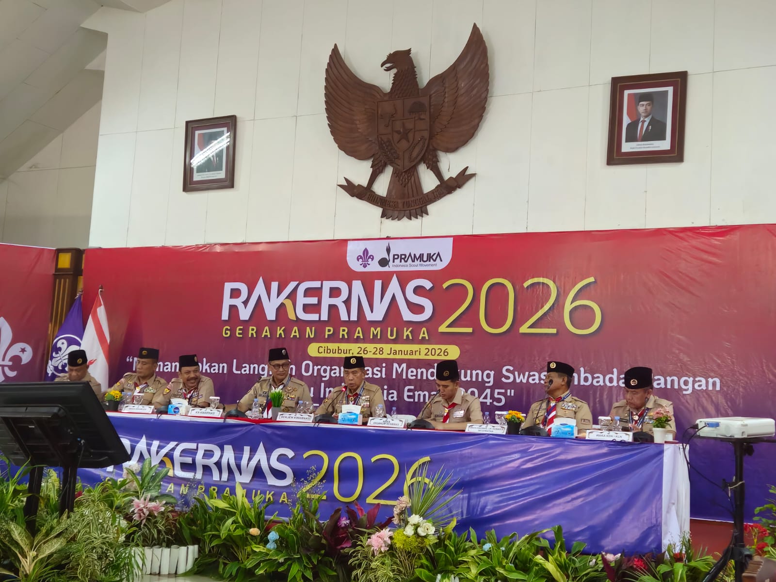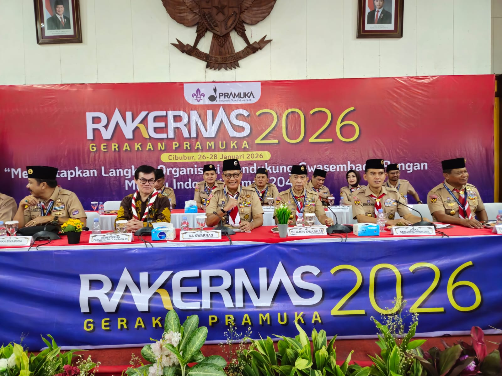 Rakernas Gerakan Pramuka 2026 mengusung tema “Memantapkan Langkah Organisasi Mendukung Swasembada Pangan Menuju Indonesia Emas 2026”, sebagai upaya memperkuat peran Pramuka dalam mendukung agenda pembangunan nasional dan pembinaan generasi muda.