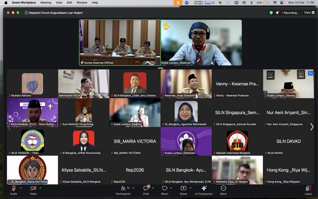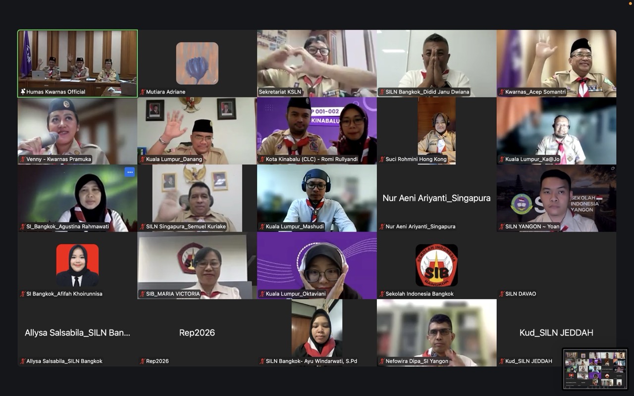 PRAMUKA.ID – Kwartir Nasional Gerakan Pramuka menggelar Forum Gugus Depan di Perwakilan RI secara virtual pada Senin, 23 Februari 2026 yang secara langsung dipandu oleh Bidang Kerja Sama Luar Negeri di Gedung Kwartir Nasional, Jakarta. Forum ini diselenggarakan untuk menjalin komunikasi dan mendorong optimalisasi pembinaan dan pengembangan pembinaan Pramuka yang berada di mancanegara.
