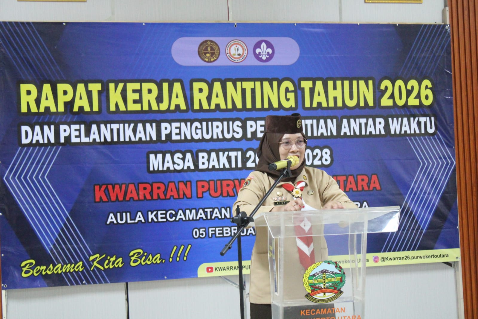 Mabiran Purwokerto Utara, Kak Kris Sinta Indra Kusumawati, S.STP, dalam sambutannya menegaskan bahwa Rapat Kerja Ranting memiliki peran strategis sebagai ruang musyawarah untuk menentukan arah dan langkah pembinaan kepramukaan di tingkat ranting.