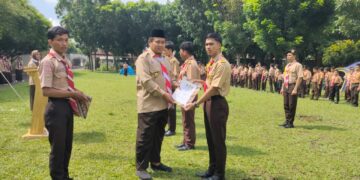 Perkemahan Sabtu Ahad 2024 di tutup oleh kak Drs. Arsyad selaku ketua Gudep dan sekaligus melantik dan mengukuhkan yang di awali tanya jawab pelantikan, penyematan tanda kecakapan umum dan penyiraman air bunga 7 warna.