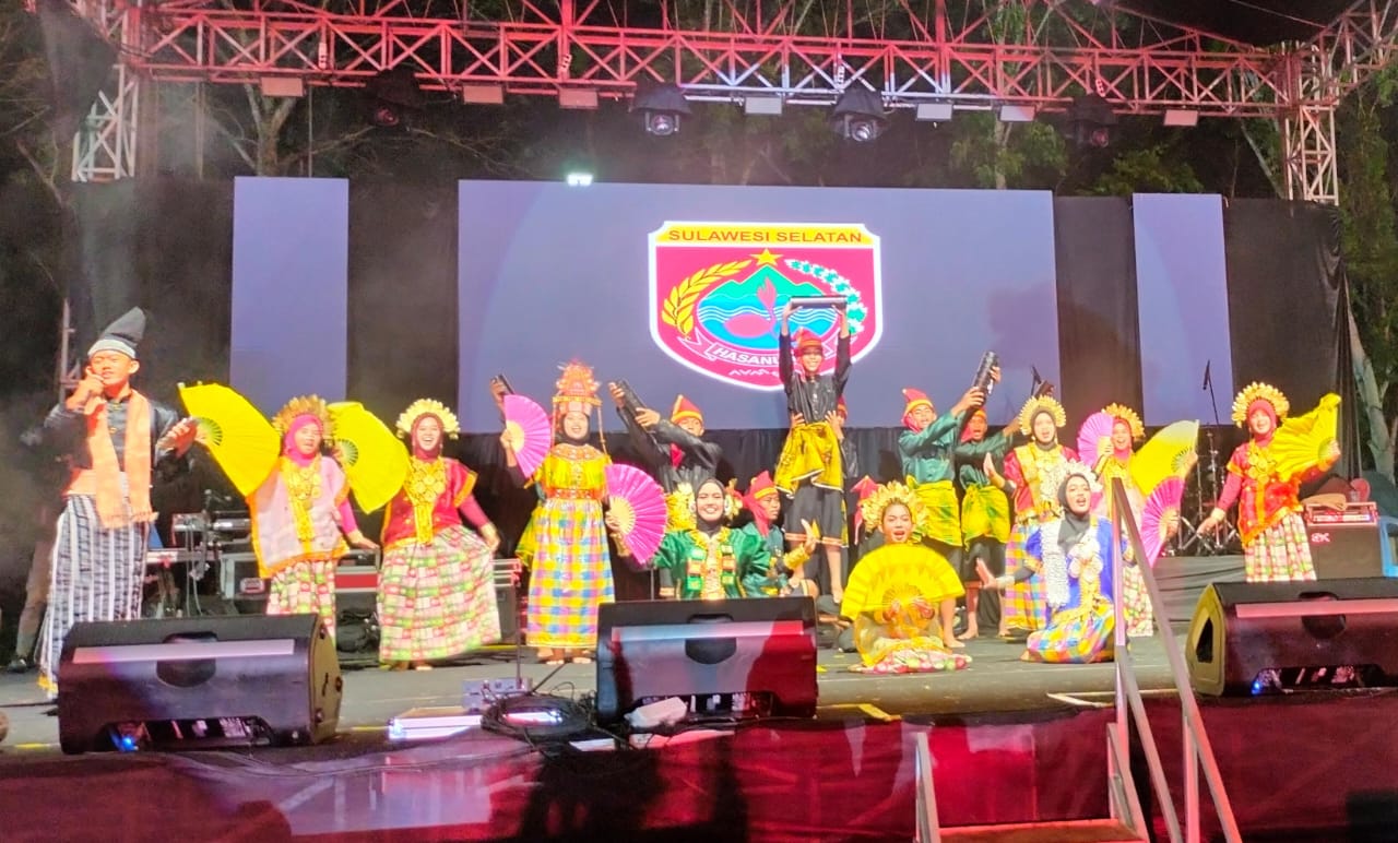 Dengan mengenakan busana adat yang penuh warna dan gemerlap, kontingen Sulsel menyuguhkan sebuah tarian kolosal yang menjadi persembahan keberagaman budaya di Sulawesi Selatan. Mereka merangkai harmonis gerakan dinamis dari beberapa etnis utama di Sulawesi Selatan, termasuk unsur-unsur tari-tarian yang gagah, tangkas namun anggun.
