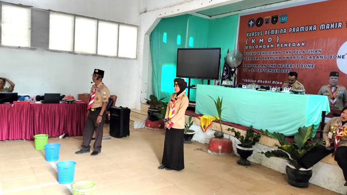 Kegiatan KMD dengan materi ragam upacara untuk Pramuka golongan penegak tersebut dilaksanakan di Aula SMK Negeri 3 Bone, Labombo, Kecamatan Libureng, Kabupaten Bone, Sulawesi Selatan. (Minggu, 28/09/2025)