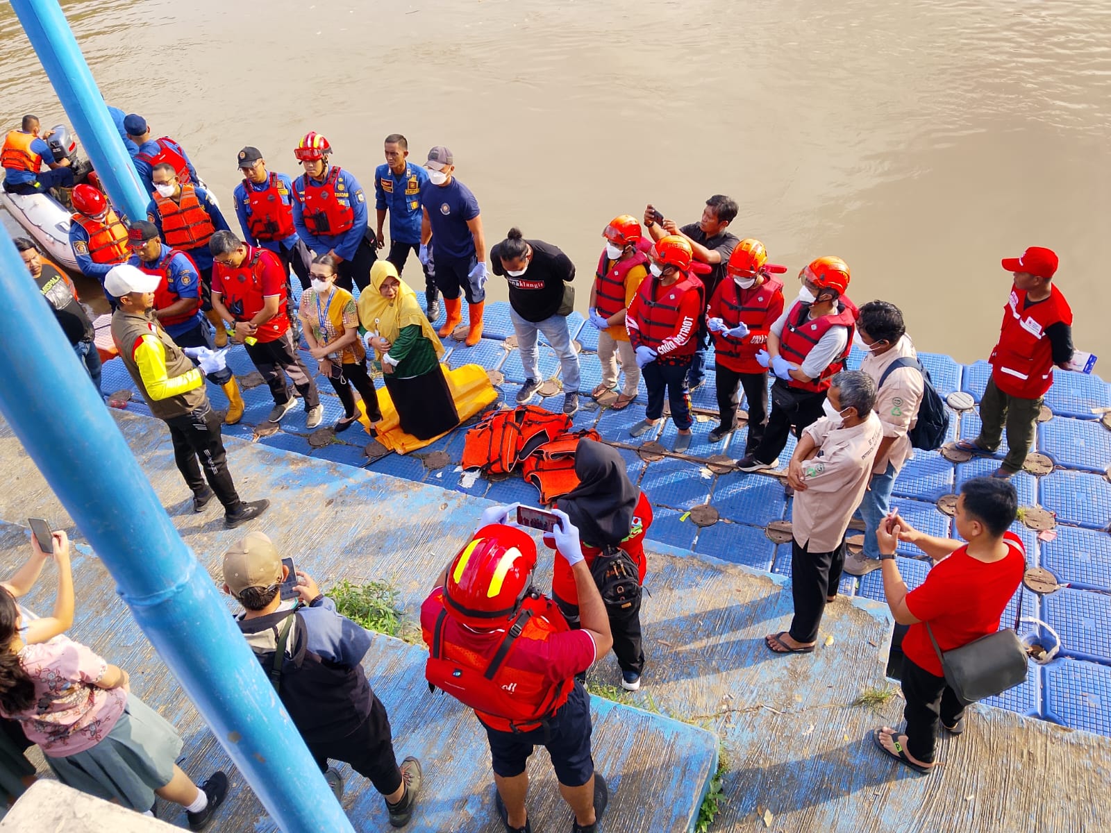 “Rintisan Saka Patriot Kwarcab Kota Tangerang menurunkan 10 personil, satu unit perahu karet beserta alat alat pendukungnya. Rintisan Saka Patriot Kwarcab Kota Tangerang yang turut mendampingi kegiatan ini yakni pimpinan saka, instruktur serta pamong saka. Hadir pula Ketua Pramuka Peduli Kwarcab Kota Tangerang, Bobby Yunandar,” terang Kak Ahmad Bunyamin.