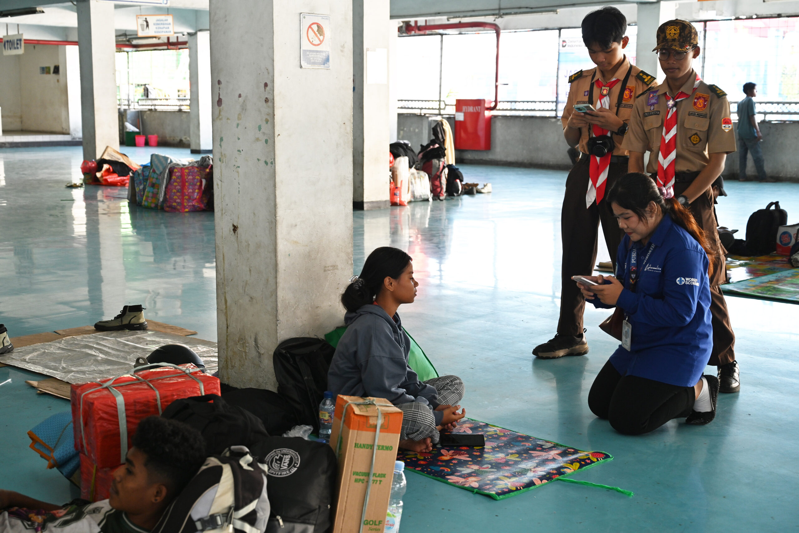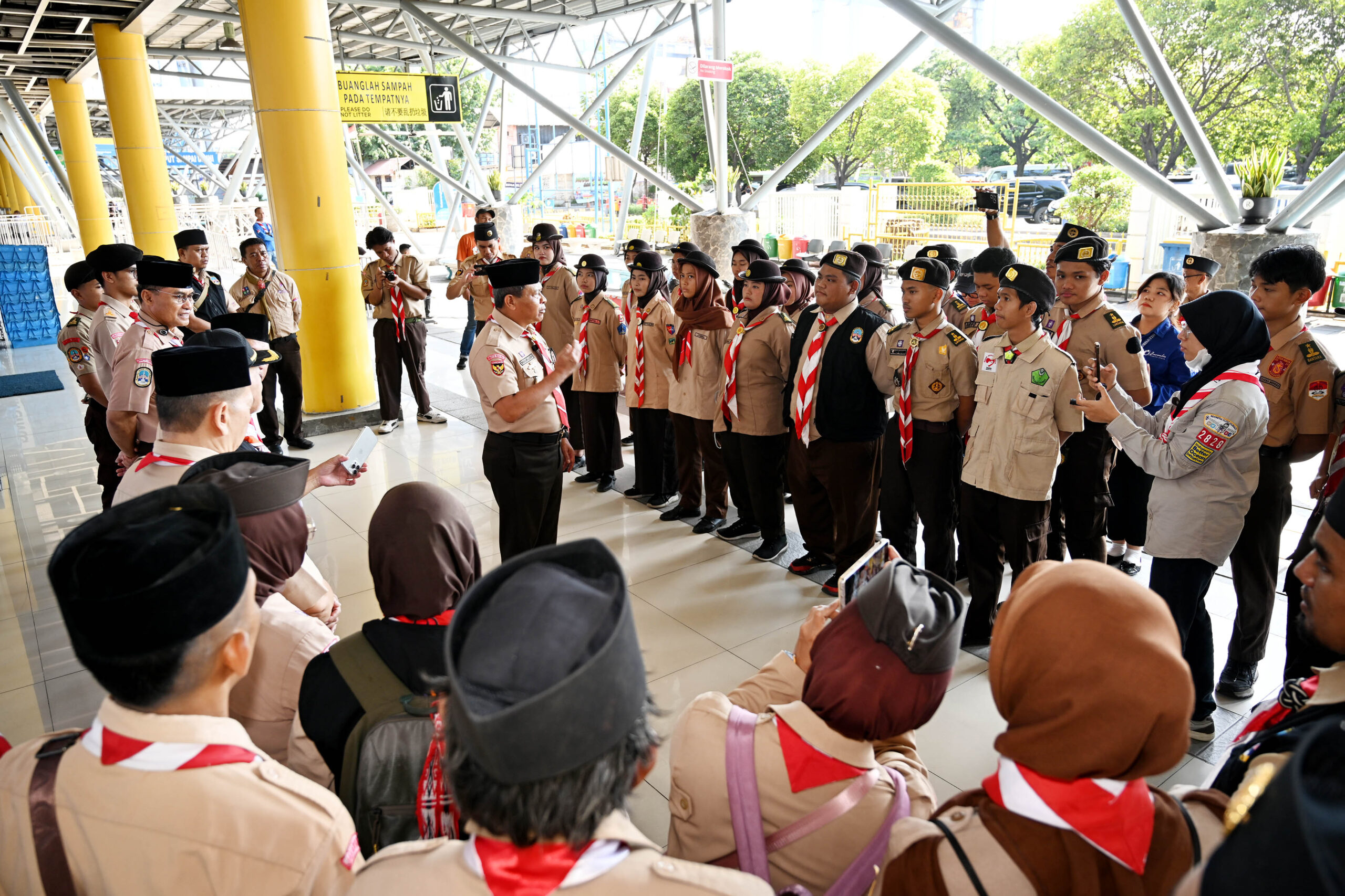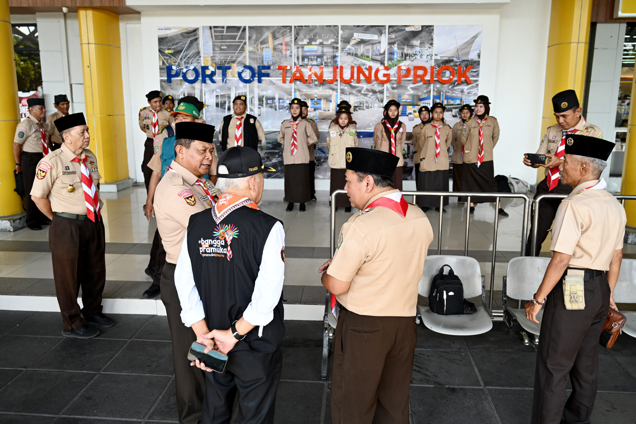 “Alhamdulillah hari ini sudah hari ketiga di Jakarta Utara, sudah mulai bergerak di Stasiun Tanjung Priok, Terminal Tanjung Priok, sebagian ada di terminal bayangan, demikian juga di wilayah lain yaitu di Penjaringan, PIK Icon, dan Pelabuhan Kaliadem,” jelas Kak Sujud Hanafie mengenai sebaran anggota Pramuka di wilayahnya.