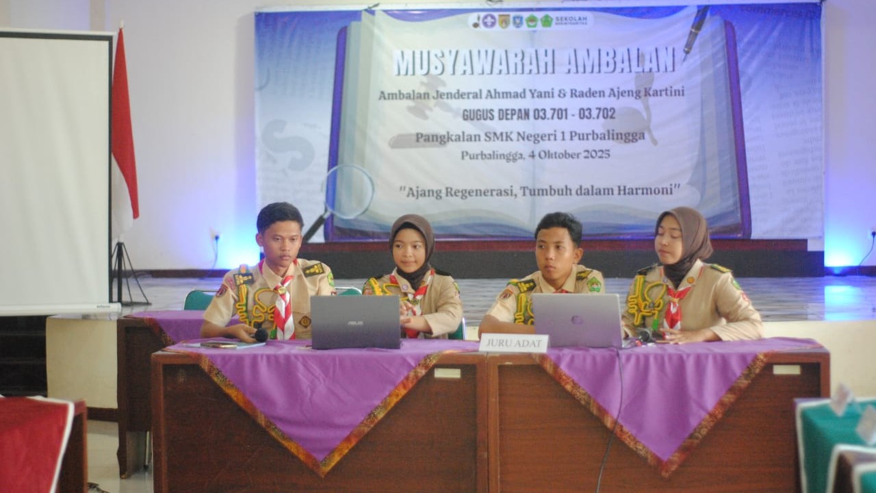 PRAMUKA.ID – Ambalan Jendral Achmad Yani-Raden Ajeng Kartini Pramuka SMK N 1 Purbalingga laksanakan Musyawarah Ambalan yang bertempat di Aula Jendral Soedirman SMKN 1 Purbalingga. Sabtu, 4 Oktober 2025. Musyawarah Ambalan ini diikuti oleh seluruh Bantara dan laksana kelas XI dan XII.