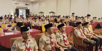 Peserta Muscab yang terdiri dari perwakilan kwartir ranting dan gugus depan pramuka tampak antusias mengikuti rangkaian acara yang berlangsung tertib dan khidmat.