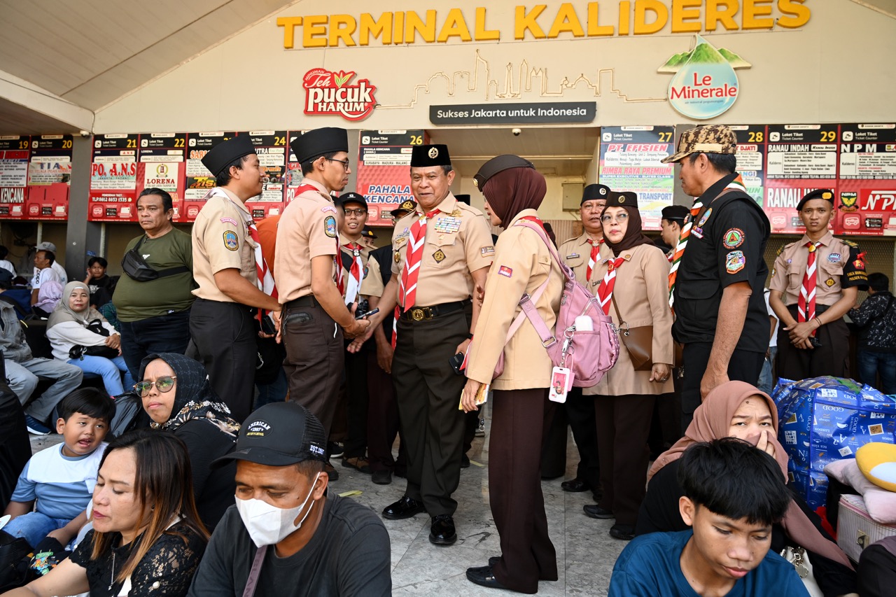 PRAMUKA.ID – Jakarta – Kwartir Nasional Gerakan Pramuka berkolaborasi dengan Kwarda DKI Jakarta melaksanakan monitoring langsung ke sejumlah posko Karya Bakti Lebaran (KBL) pada Senin, 16 Maret 2026. Peninjauan yang dipimpin oleh Wakil Ketua Kwarnas Bidang Abdimas, LH, dan Humasinfo, Kak Mayjen TNI Mar (Purn) Yuniar Ludfi ini salah satunya mengarah ke Terminal Kalideres guna memastikan kesiapsiagaan anggota Pramuka di tengah padatnya arus mudik.