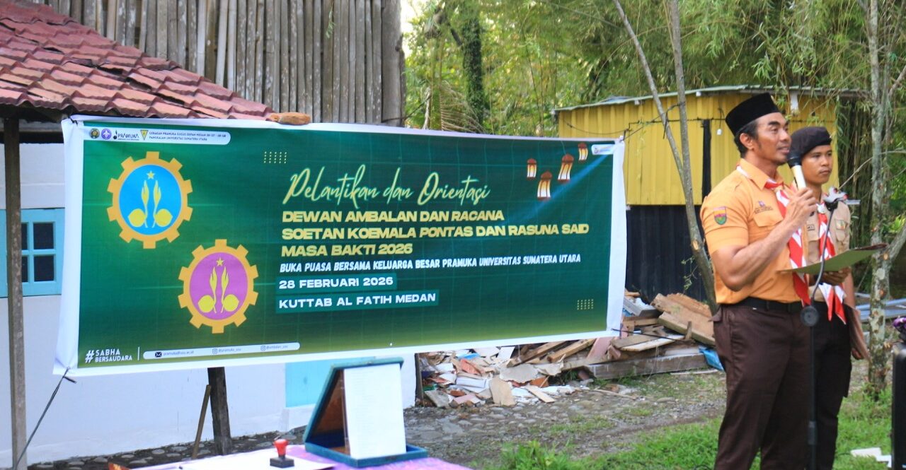 PRAMUKA.ID – Gerakan Pramuka Gugus Depan Medan 08-137 dan 08-138 Pangkalan Universitas Sumatera Utara melaksanakan kegiatan Pelantikan dan Orientasi Dewan Ambalan serta Dewan Racana Soetan Koemala Pontas dan Rasuna Said Masa Bakti 2026 yang dirangkaikan dengan buka puasa bersama keluarga besar Pramuka USU. Kegiatan ini berlangsung di Kuttab Al Fatih Medan sebagai bagian dari upaya penguatan organisasi dan pembinaan kader kepemimpinan Pramuka di lingkungan universitas.