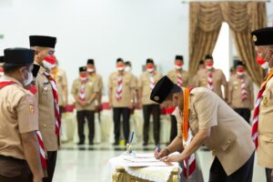 PRAMUKA.ID — Buya Mahyeldi, Ketua Majelis Pembimbing Daerah (Ka Mabida) Sumatera Barat (Sumbar) masa bakti 2022 – 2027 dilantik oleh Ketua Kwartir Nasional (Kwarnas) Gerakan Pramuka Komjen Pol. (Purn) Budi Waseso di Auditorium Gubernuran Sumbar, Jumat (26/08/2022).