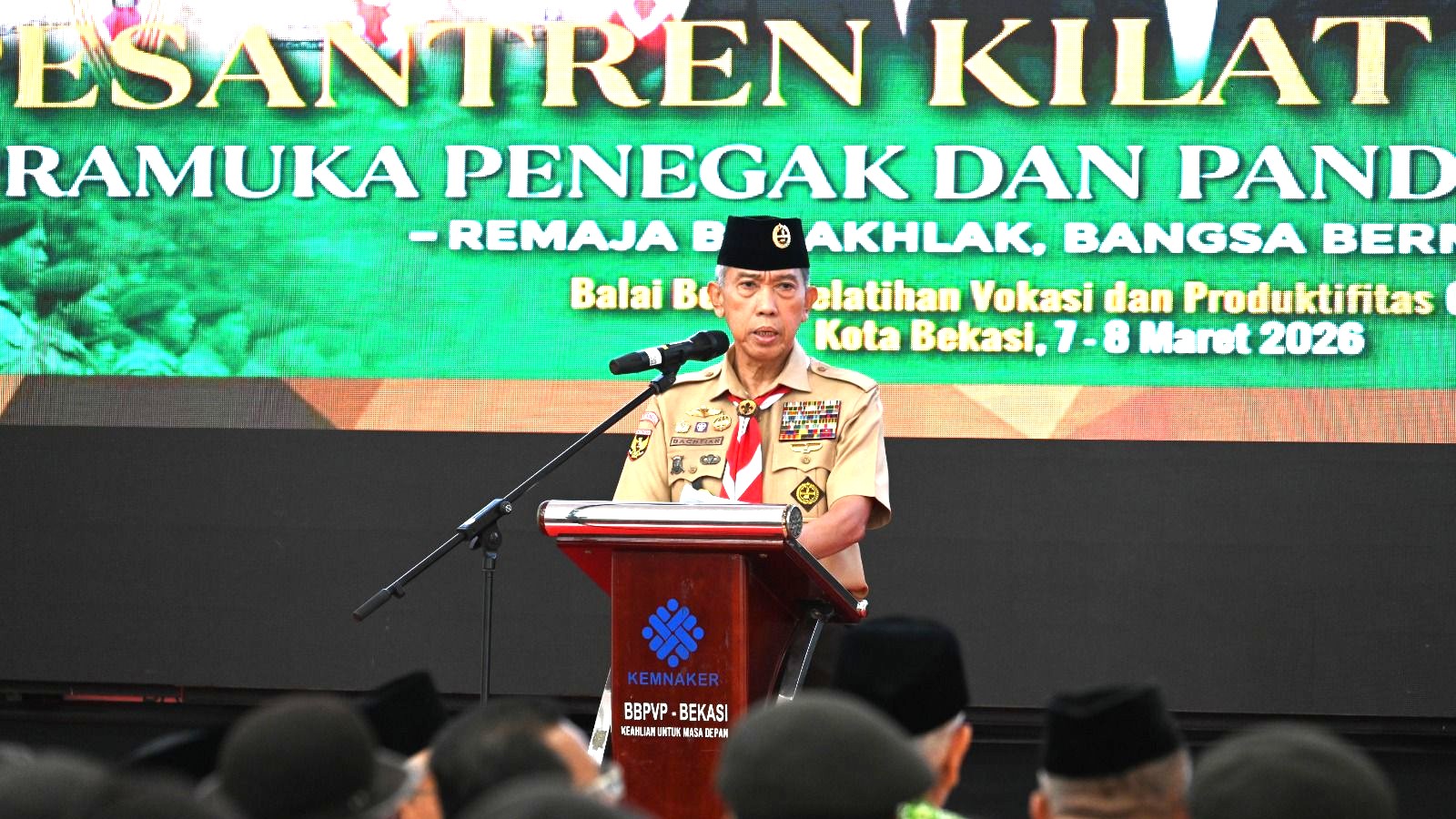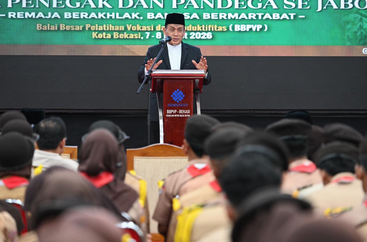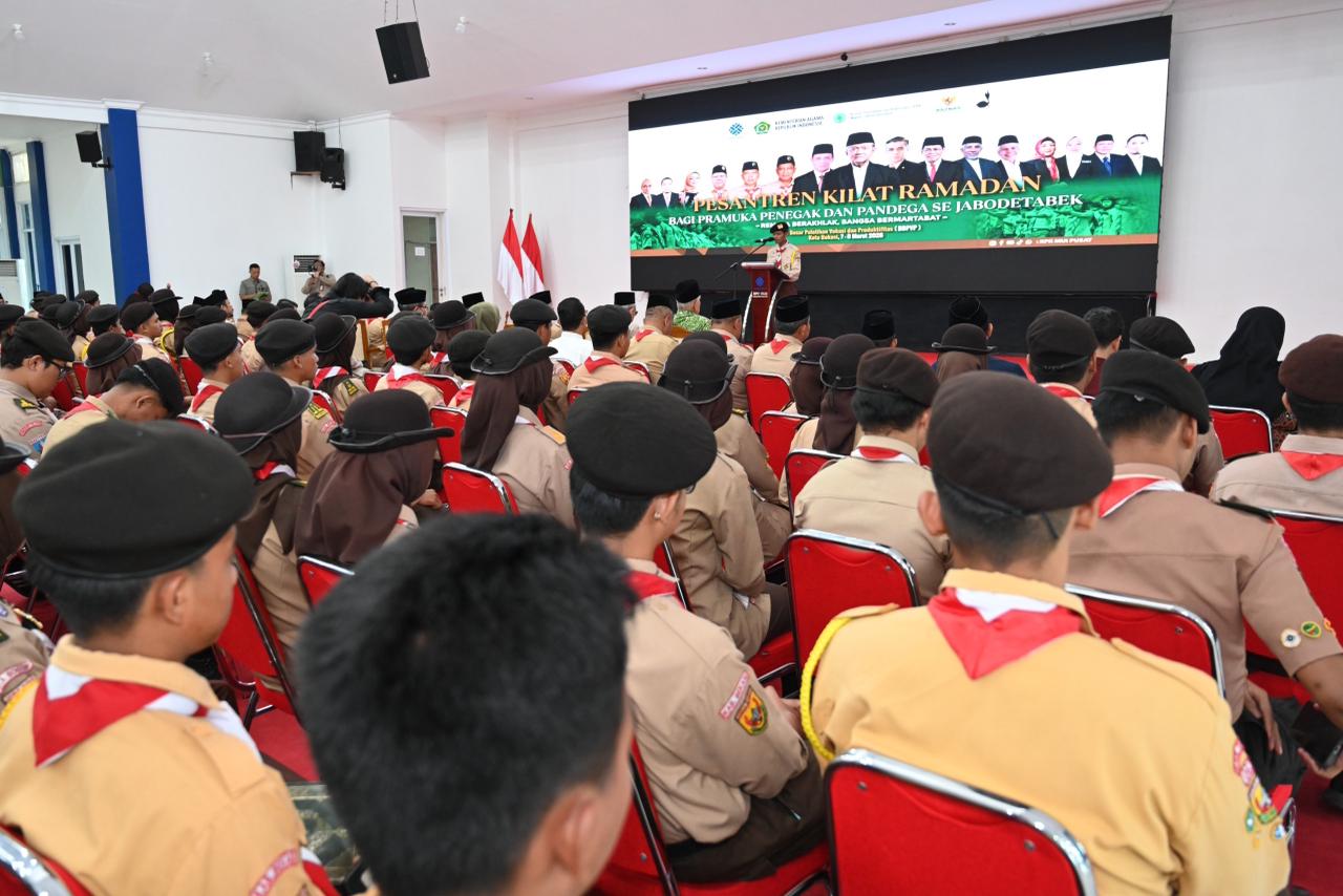 PRAMUKA.ID – Kwartir Nasional (Kwarnas) Gerakan Pramuka, Kementerian Ketenagakerjaan RI (Kemnaker RI) dan Majelis Ulama Indonesia (MUI) menggelar acara Pembukaan Pesantren Kilat Ramadan Bagi Pramuka Penegak dan Pandega se-Jabodetabek yang berlangsung pada Kamis & Jumat, 7-8 Maret 2026. Acara ini digelar di Gedung Garuda, Balai Besar Pelatihan Vokasi dan Produktivitas (BBPVP) Kemnaker RI, Kota Bekasi, Jawa Barat