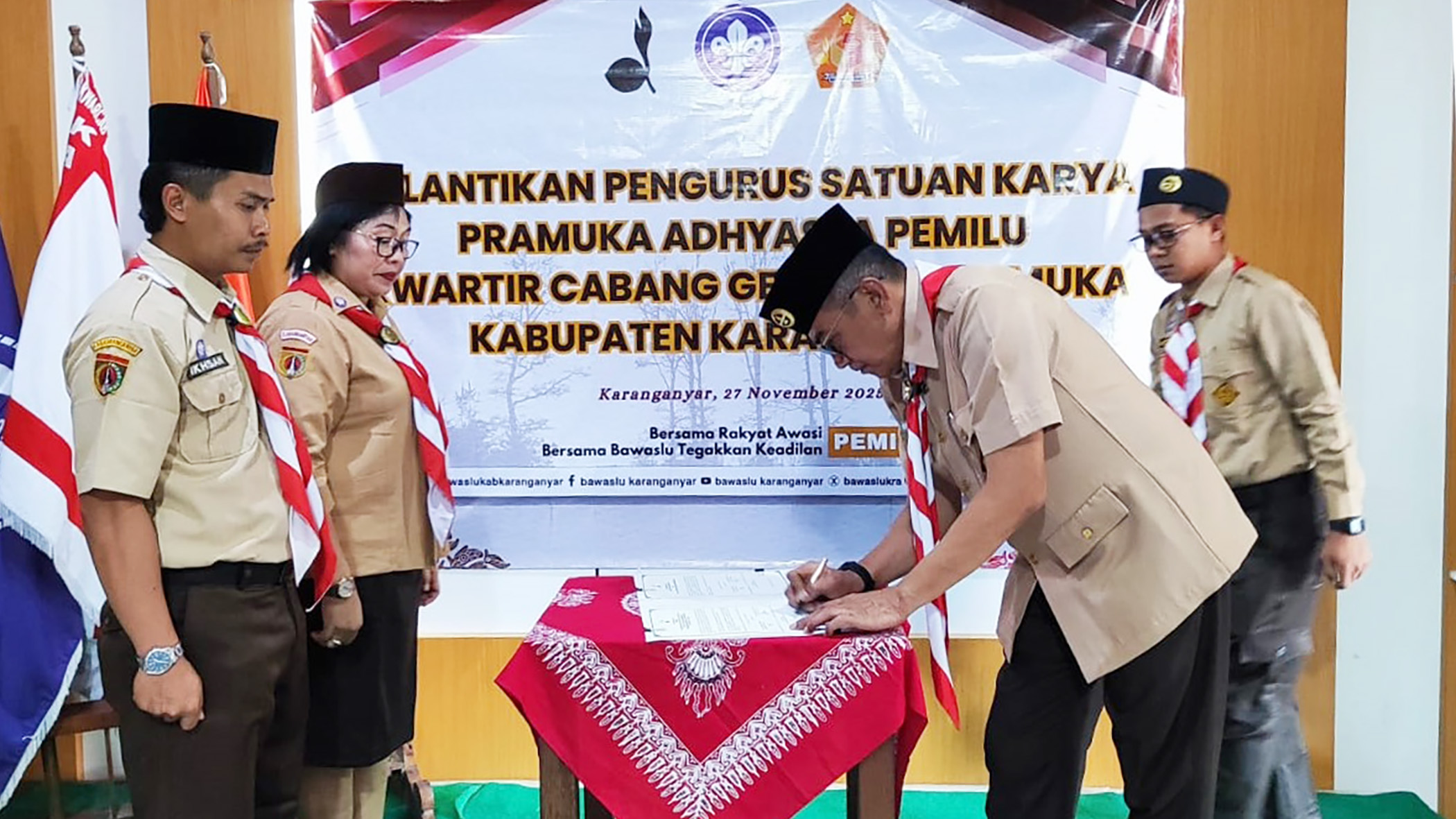 PRAMUKA.ID – Ketua Kwartir Cabang Gerakan Pramuka Karanganyar, Jawa Tengah, Kak Kurniadi Maulato, S.Sos., M.Si. mengukuhkan Majelis Pembimbing (Mabi), Pimpinan, Pengurus, Pamong, dan Instruktur Saka Adhyasta Pemilu masa bakti 2026-2031.