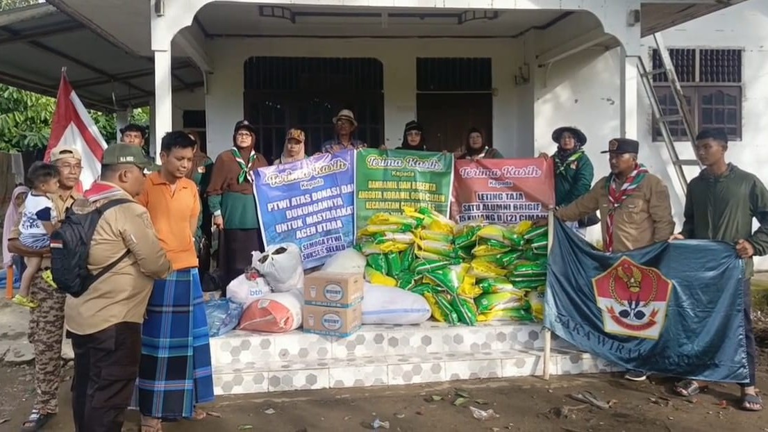 PRAMUKA.ID – Aceh Utara, Satuan Karya Pramuka Wira Kartika Sanggar “Bujang Salim” Koramil 03 Dewantara – Kodim 0103 Aceh Utara menyalurkan bantuan kemanusiaan kepada masyarakat terdampak Bencana Banjir Hidrometeorologi diwilayah Gampong Rises Baroh Kecamatan Sawang Kabupaten Aceh Utara. Rabu (17/12/2025).