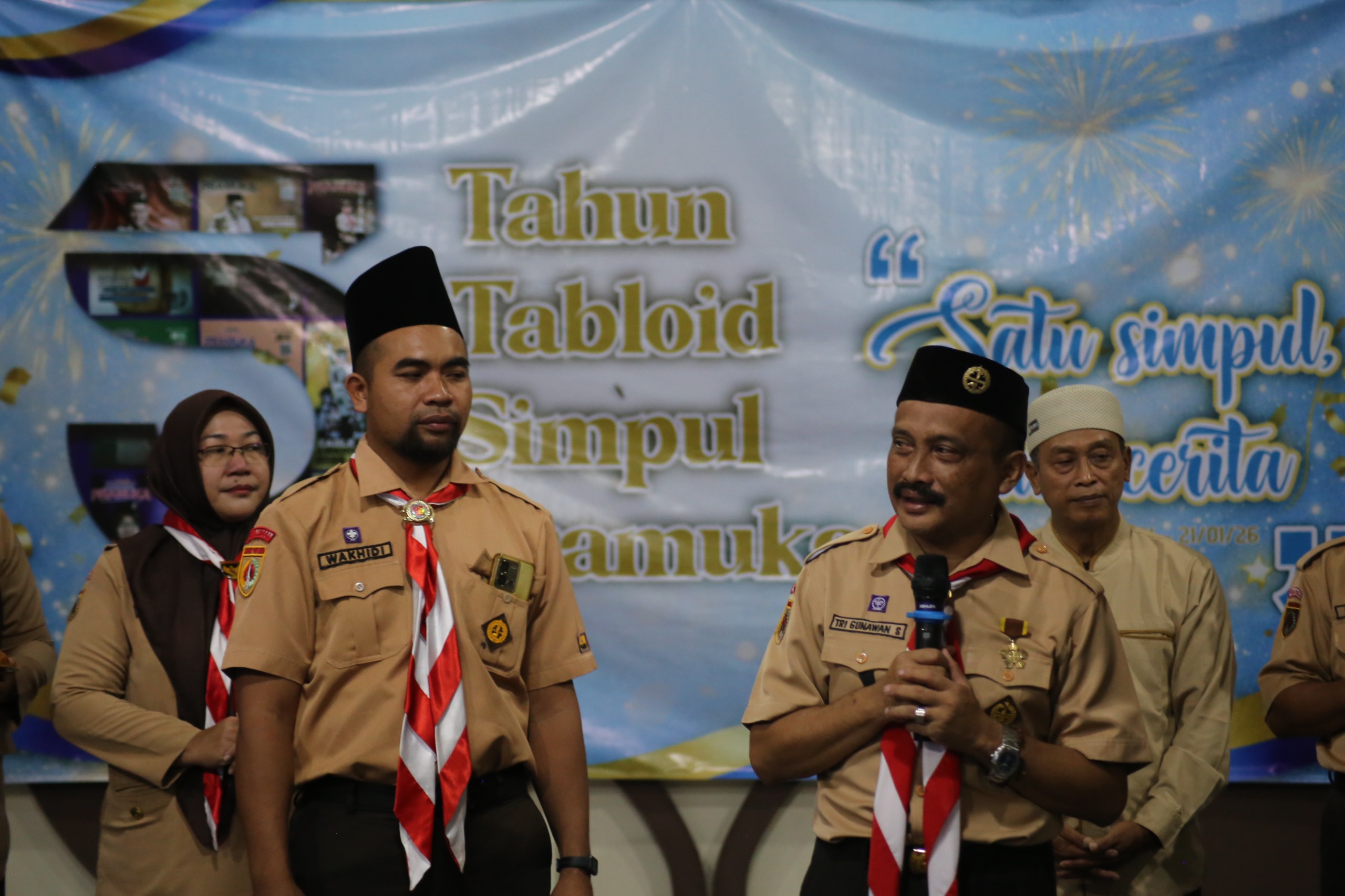 “Hari ini merupakan hari yang sangat membahagiakan, bukan hanya bagi saya pribadi, tetapi juga bagi seluruh tim Tabloid Simpul Pramuka. Usia lima tahun ini bukan waktu yang singkat dan patut kita syukuri bersama.” Ungkapnya.