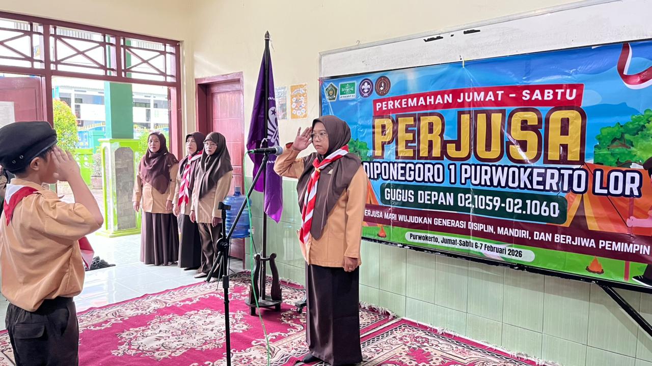 PRAMUKA.ID – Purwokerto, Sebanyak 89 anggota Pramuka Penggalang MI Diponegoro 1 Purwokerto Lor mengikuti kegiatan Perkemahan Jumat–Sabtu (Perjusa) yang digelar di lingkungan madrasah, Jumat–Sabtu (6–7/2/2026). Kegiatan ini menjadi wahana pembinaan karakter peserta didik melalui latihan kemandirian, keberanian, dan kerja sama tim.