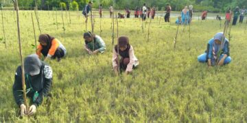 PRAMUKA.ID – Mangrove yang merupakan tanaman yang hidup di tepi pantai menjadi tanaman pilihan guna mencegah abrasi. Dalam kegiatan Kemah Pemuda Pesisir 2024 para peserta ikut serta menanam bibit mangrove, adapun bibit yang di tanam sebanyak 1000 batang.