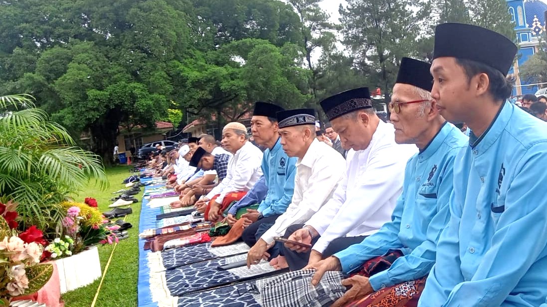 Shalat Idul Fitri berlangsung dengan tertib dan lancar, diakhiri dengan doa bersama serta saling bersalaman sebagai wujud kebersamaan dan semangat persaudaraan di hari yang fitri.