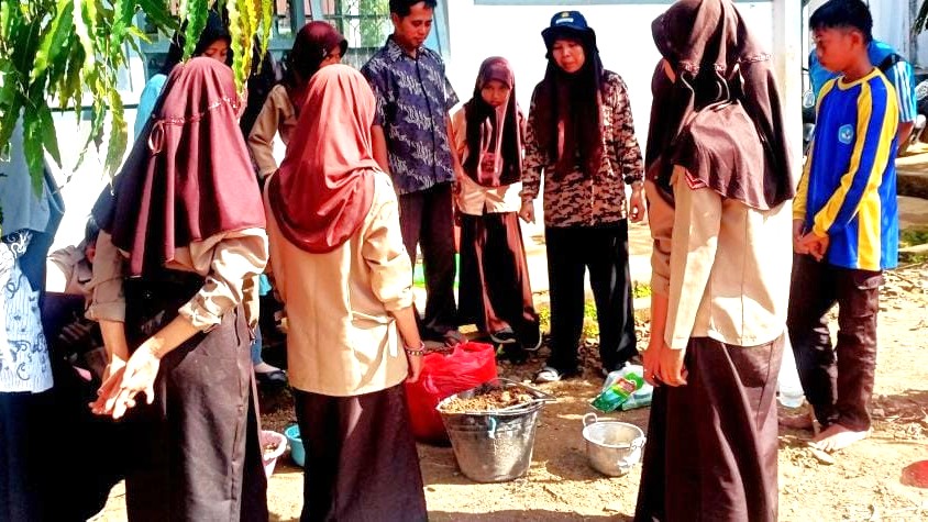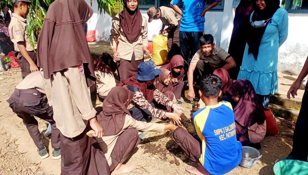 PRAMUKA.ID – Gerakan Pramuka tak hanya mengajarkan keterampilan baris-berbaris dan sandi, tetapi juga keterampilan praktis yang bermanfaat bagi lingkungan dan ketahanan pangan. Hal ini dibuktikan oleh Satuan Karya Pramuka (Saka) Tarunabumi Kwartir Ranting Patimpeng, Kabupaten Bone, yang baru-baru ini menggelar kegiatan pembimbingan pembuatan pupuk organik bokashi di SMP Negeri 2 Salomekko, Desa Masago, Kecamatan Patimpeng. (Jum’at, 14/11/2025) Kegiatan ini merupakan bagian dari upaya kolaboratif untuk mendorong pemanfaatan lahan pekarangan sekolah secara optimal. Tujuannya adalah mengubah pekarangan yang ada menjadi kebun produktif yang dapat ditanami berbagai jenis sayur-sayuran dan komoditas hortikultura lainnya.